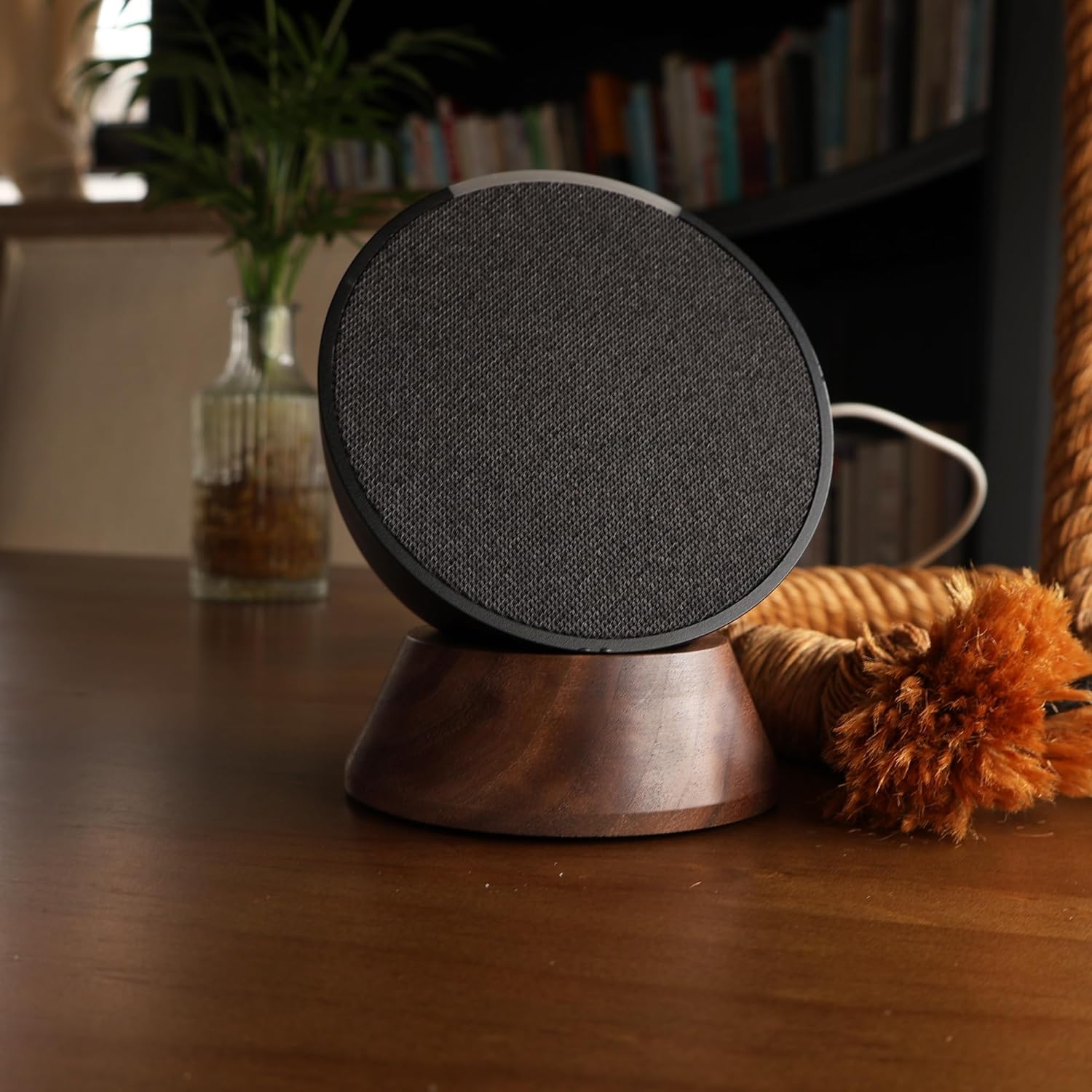 Black Walnut Stand for Echo Pop ,Built-in Cable Management,