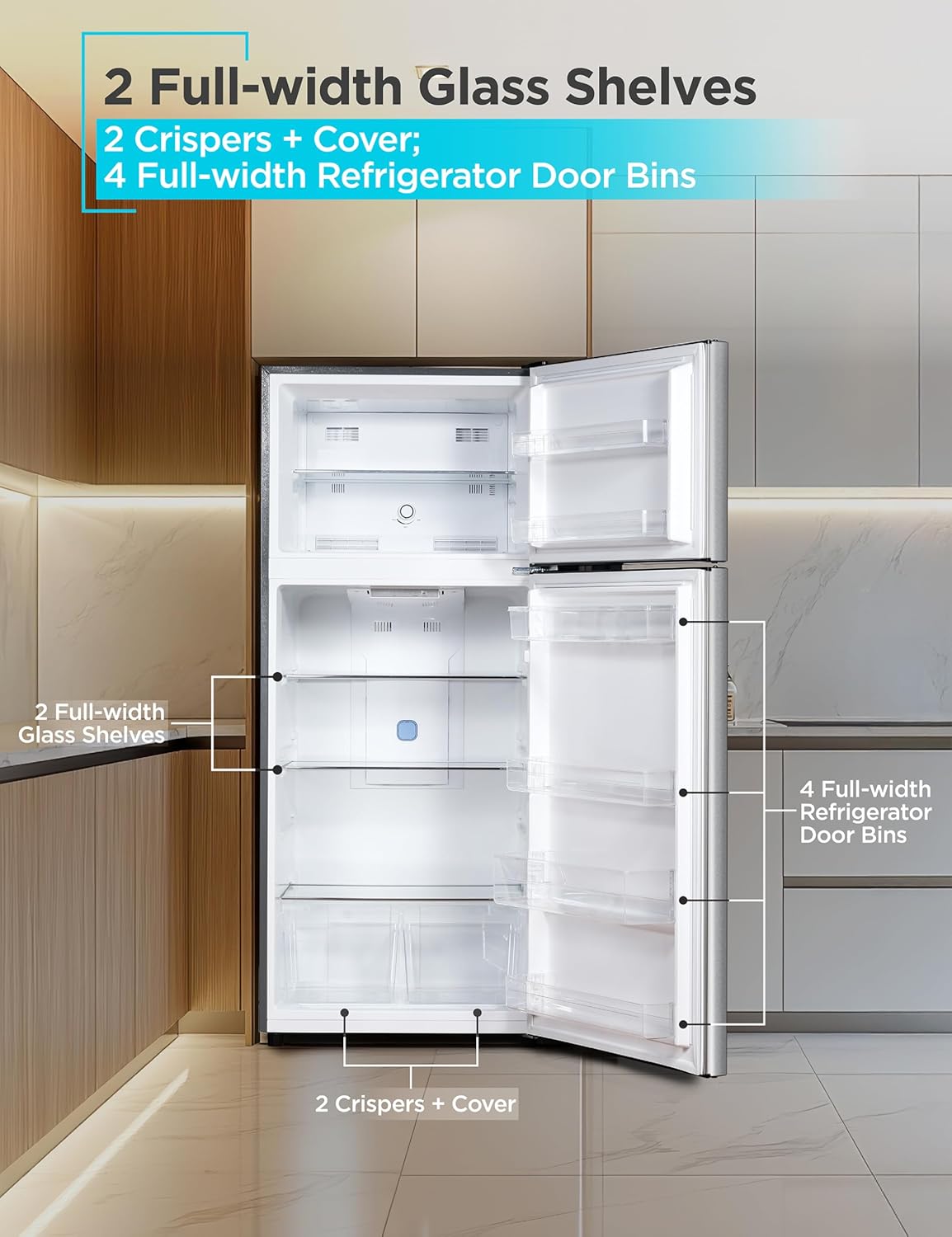 Spacious 14.6 Cu. Ft. Capacity: This full size refrigerator with freezer provides ample space for your fresh and frozen foods. Top freezer refrigerator is ideal for kitchens in homes and apartments