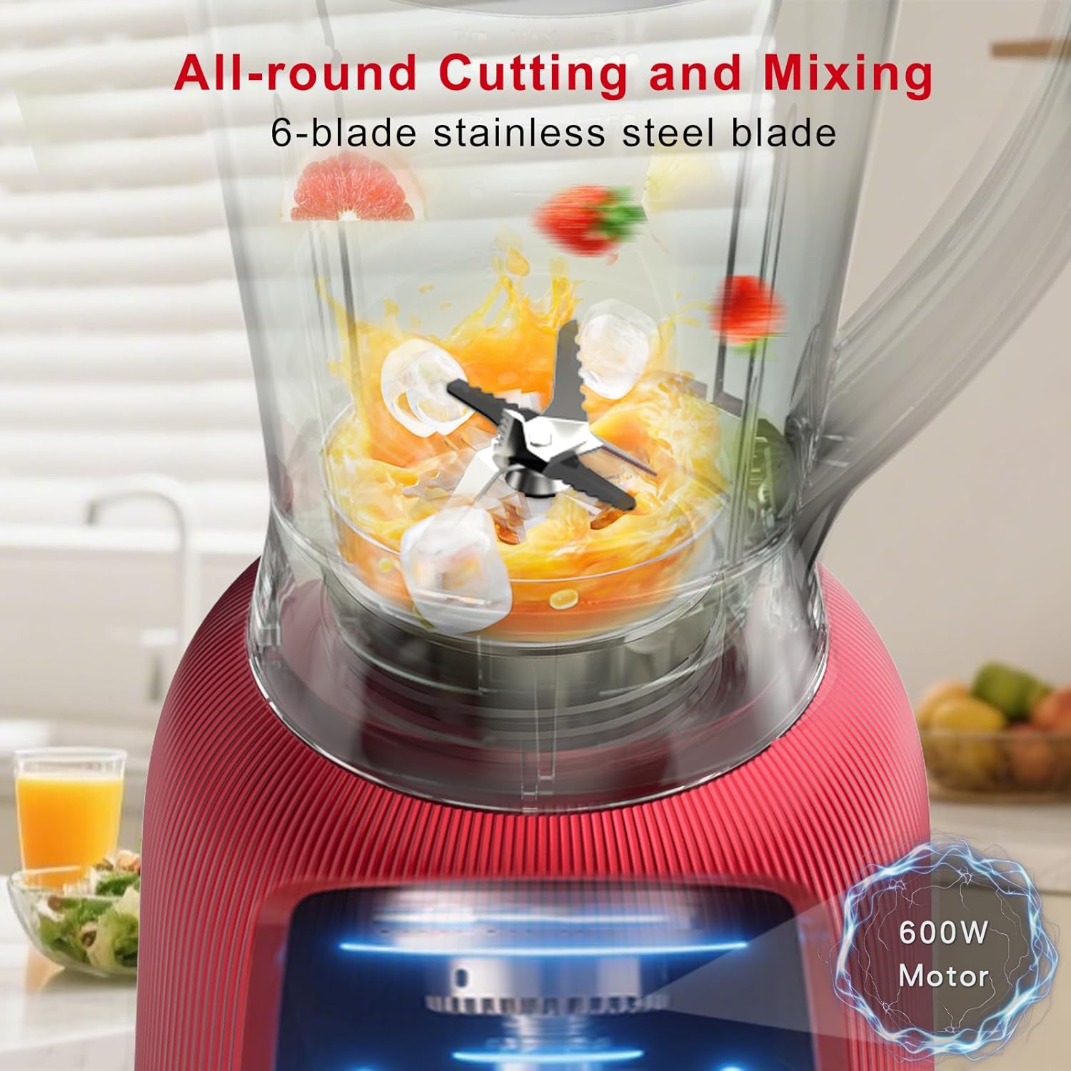 All-in-One Kitchen Blender: Powered by a 600W high-torque motor and 6-blade stainless steel cyclone system for ultra-smooth cutting performance. Effortlessly processes from delicate fruits to rock-hard ice—making cooking faster, easier, and smarter!