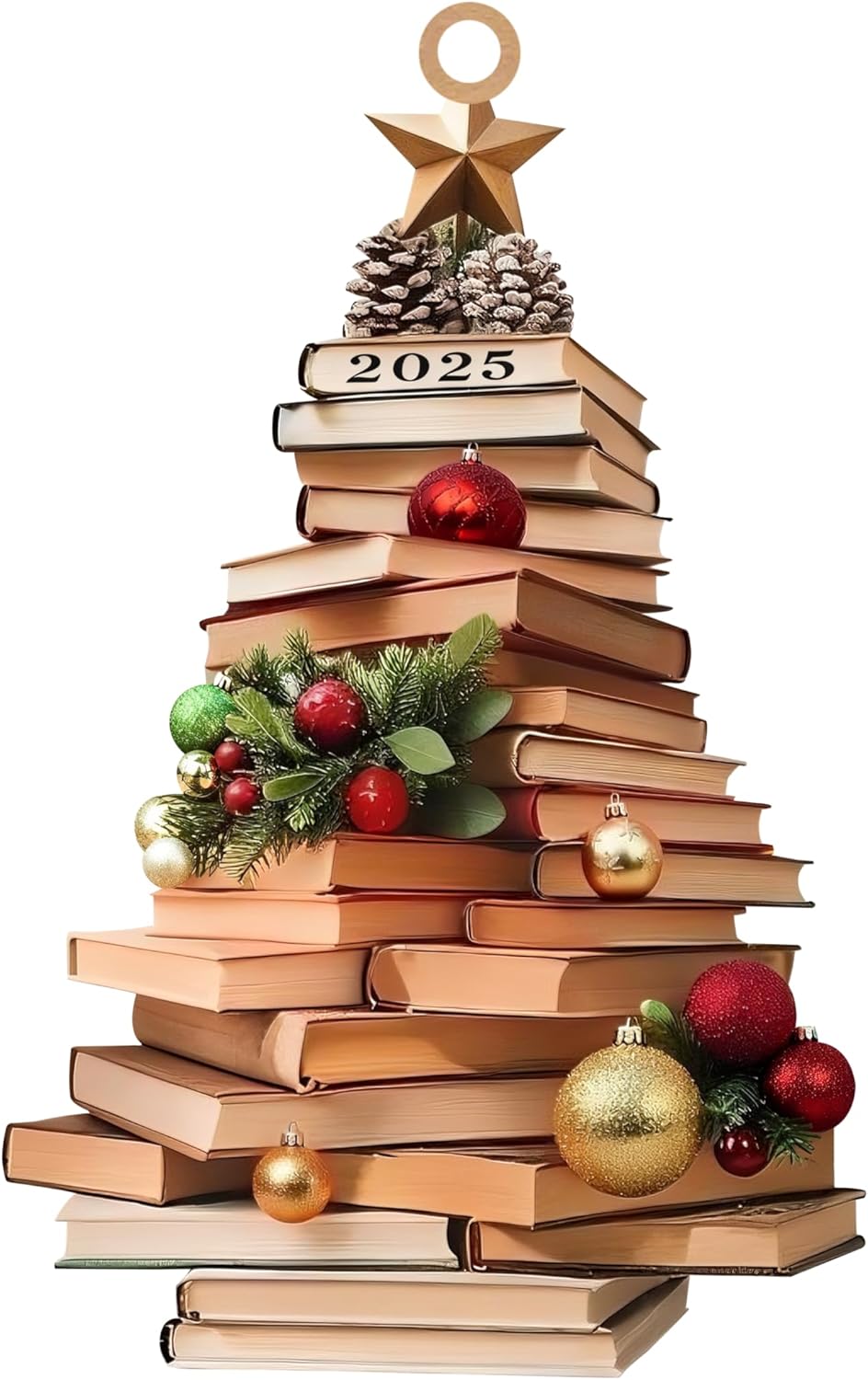 Book Ornament 2025, Book Lovers Gifts for Women Men, Bookish Gifts for Librarian Reader, Wooden Christmas Ornaments for Tree Decorations
