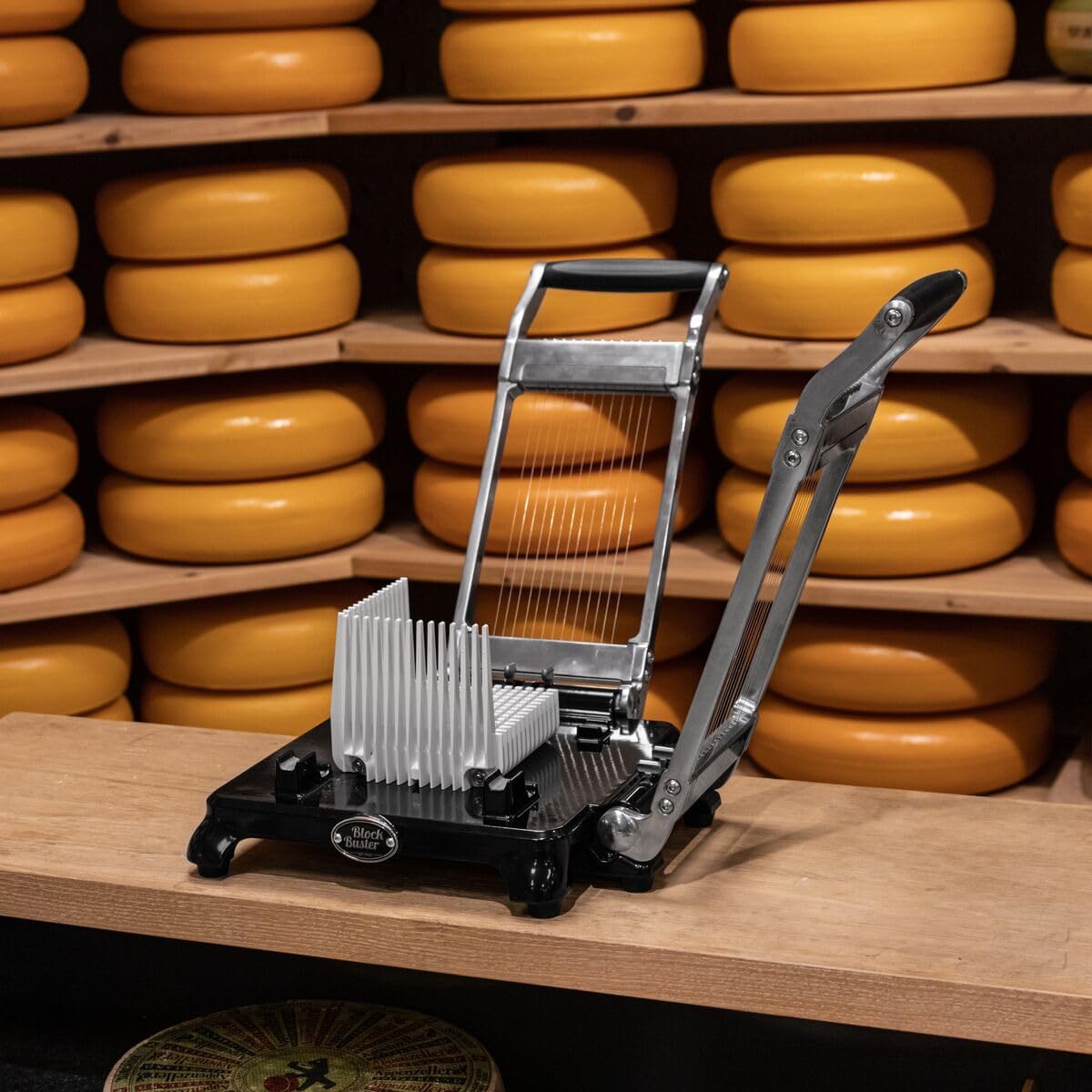 The BlockBuster Black Cheese Cutter is a professional-grade tool designed to dice cheese blocks quickly and efficiently into perfectly uniform cubes of 8 mm, 16 mm, or 24 mm. Whether you’re preparing salads, pizzas, or cheese platters, this cheese cutter saves valuable time and minimizes waste by delivering consistent cube sizes with minimal effort. It’s suitable for cutting soft and semi-hard cheeses, feta, mountain cheeses, and aged varieties. Ideal for professional environments such as restaurants, catering services, cafeterias, supermarkets, and events, the BlockBuster is also perfect for home use when you want to quickly serve neatly diced cheese cubes. The upgraded design includes individually replaceable and adjustable cutting wires, ensuring precise cutting with easy maintenance. The removable parts allow for quick disassembly and easy cleaning, with the cutting block being dishwasher-safe for added convenience. Built from high-quality cast aluminum, the BlockBuster Black Cheese Cutter offers both durability and style. Its sleek black design makes it an eye-catching addition to any countertop, while its performance and ease of use make it a must-have tool for professionals and cheese lovers alike. As part of the exclusive 1896 collection, it’s not just a practical device but also a stylish statement piece.
