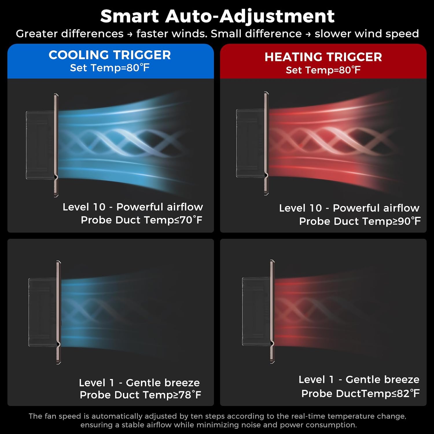 Built-in Register Booster Fan with Cover for Air Heat Vent with Fan,Fits 4″x10″ Duct/Ceiling/Floor Vents, Improves AC & Heating/Cooling,Quiet 10-Speed Household/Bedroom Ventilation,smart,Bronze