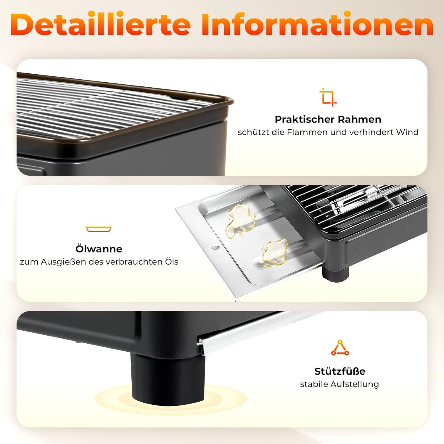 Practical Frame: It can prevent grease from dripping into the burner directly while providing the ability to dissipate heat internally to provide an even heating performance. It can also play a windproof role, making your cooking unaffected by the environment.