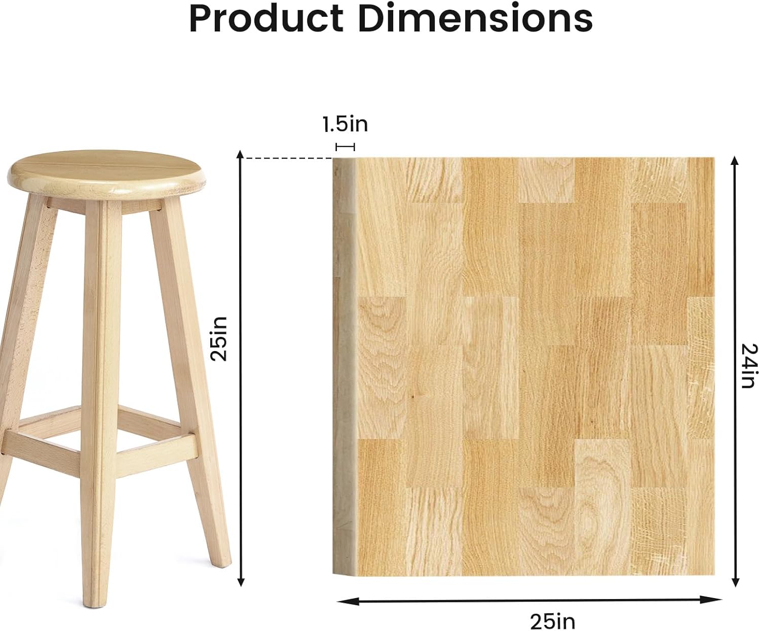 Butcher Block Countertop, Solid Wood Table Top-2ft Unfinished Large Wood Cutting Board, Birch Counter Slab Cut to Size for DIY Desktop/Washer Counter/Kitchen Island/Bakery Worktable 24x25x1.5 in