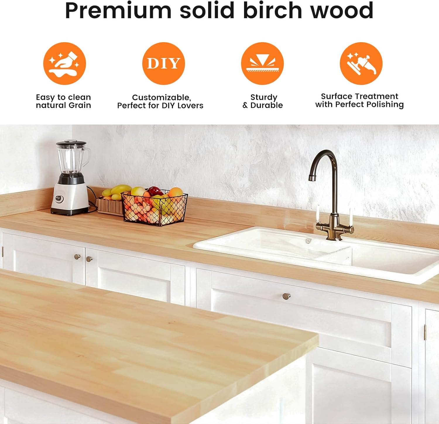 Warm & Tough Solid Birch — Enjoy the authentic beauty of 100% solid birch. Its light golden hue and consistent grain add timeless warmth. Beyond looks, this dense hardwood is naturally durable, perfect for your kitchen, office, or workbench and demanding DIY projects.