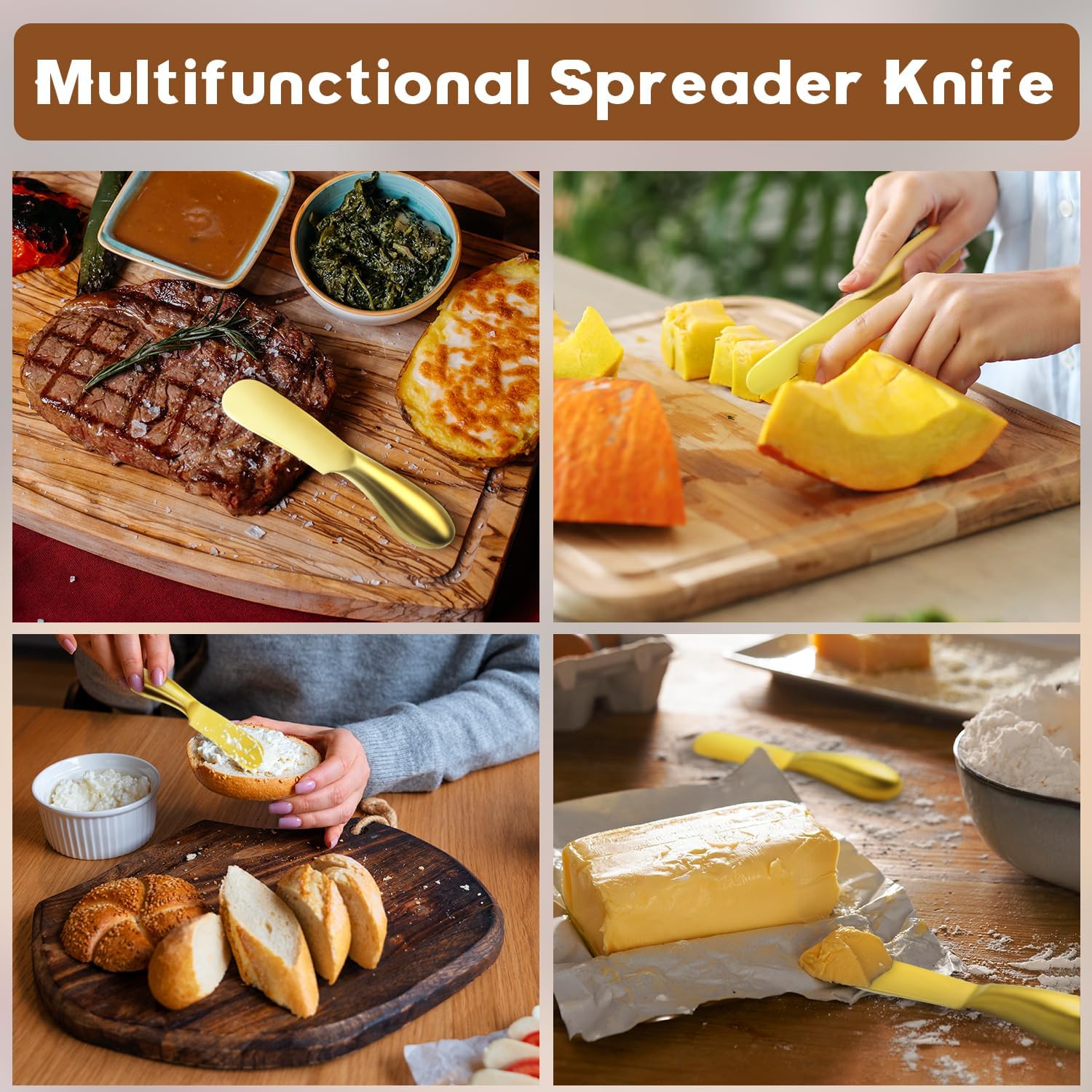 【Multifunctional Charcuterie Knives】These cheese butter spreader knives are excellent kitchen gadgets, perfect for spreading butter, peanut butter, soft cheese, jam, honey, and cream. They can also be used to cut hard cheese, cold butter, fruits, bread, and cakes, making them great companions for charcuterie boards. Additionally, they are helpful for preparing breakfast, snacks, and appetizers.