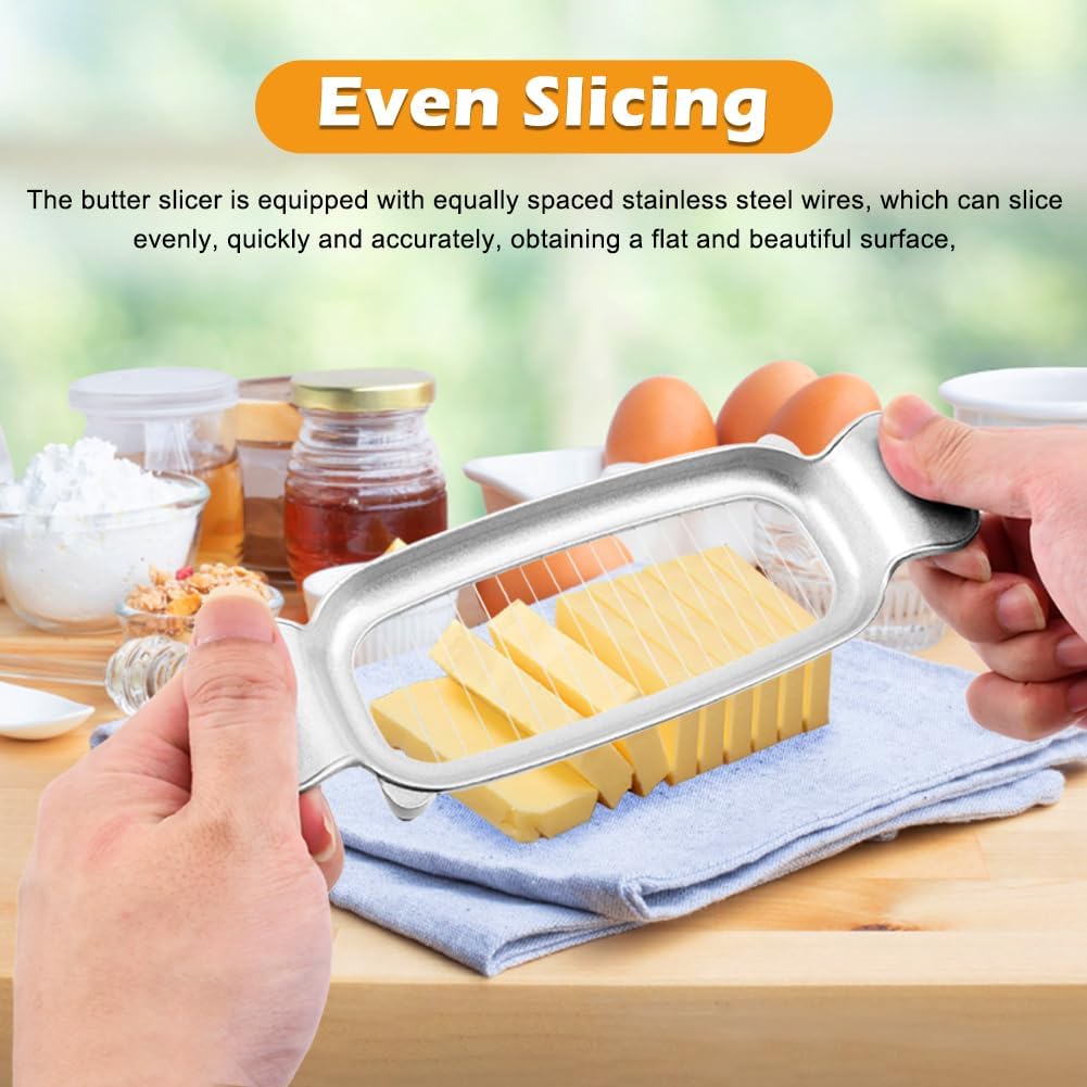 【Even Slicing】The butter slicer is equipped with equally spaced stainless steel wires, which can slice evenly, quickly and accurately, obtaining a flat and beautiful surface, making portion control easier and saving you time.