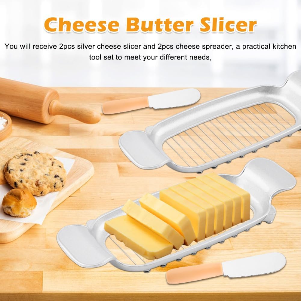 【PACKAGE CONTENT】You will receive 2pcs silver cheese slicer and 2pcs cheese spreader, a practical kitchen tool set to meet your different needs, suitable for home, restaurant, bakery shop, outdoor picnic, camping, etc.