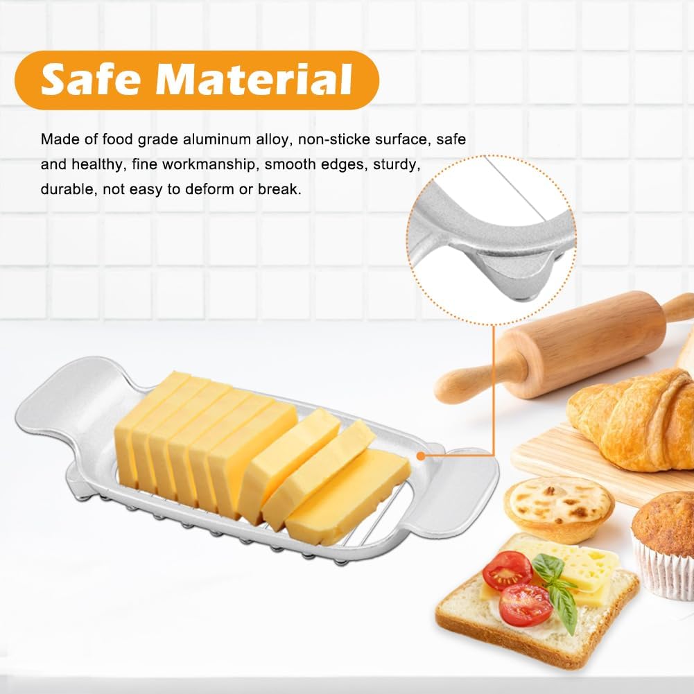 【Safe Material】The butter cutters are made of food grade aluminum alloy, non-sticke surface, safe and healthy, fine workmanship, smooth edges, sturdy, durable, not easy to deform or break, easy to clean, and has a long service time.