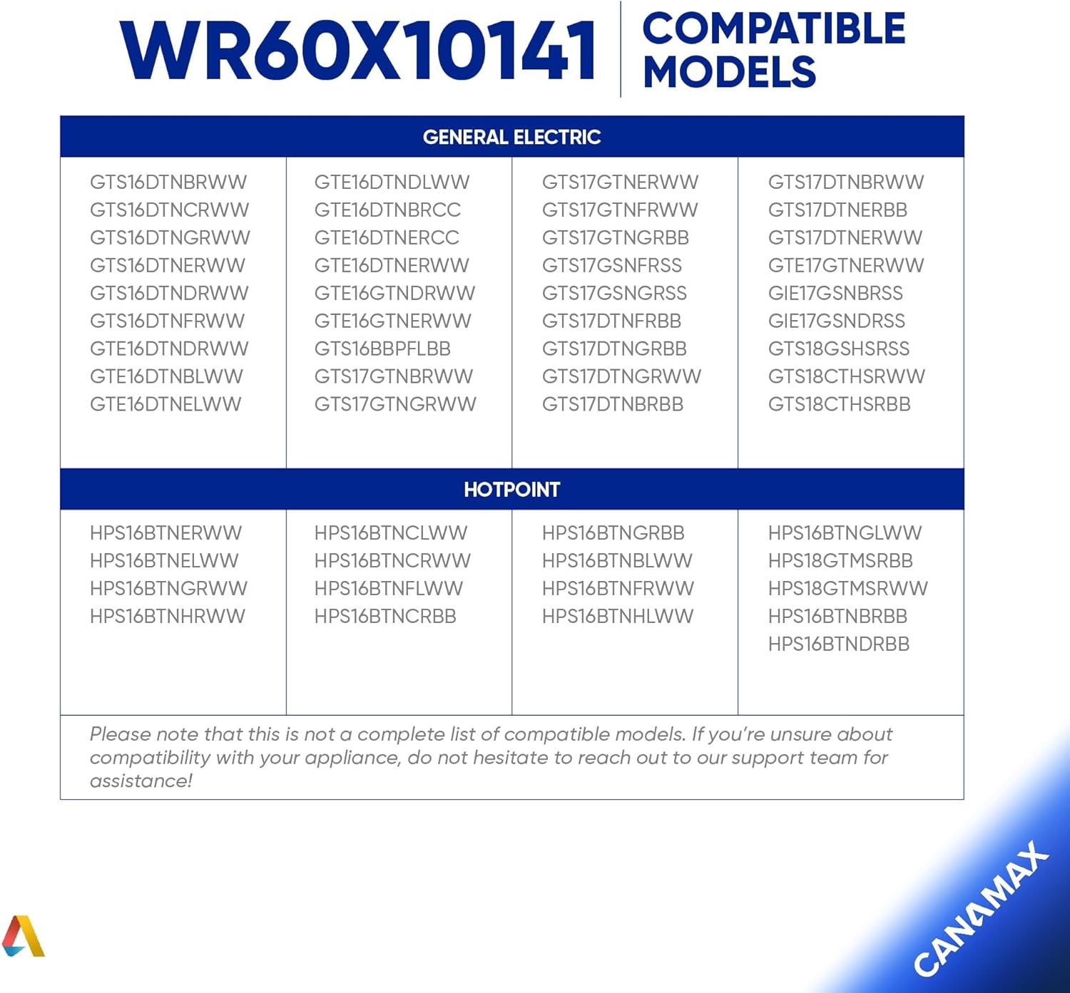 Works with most popular brands: GE, Hotpoint, Kenmore, Sears, etc. & replaces AP5955766, PS10063450, WR60X23584, WR60X10045, WR60X10046, WR60X10072, WR60X10138, WR60X10346, WR60X27646, WR60X10138.
