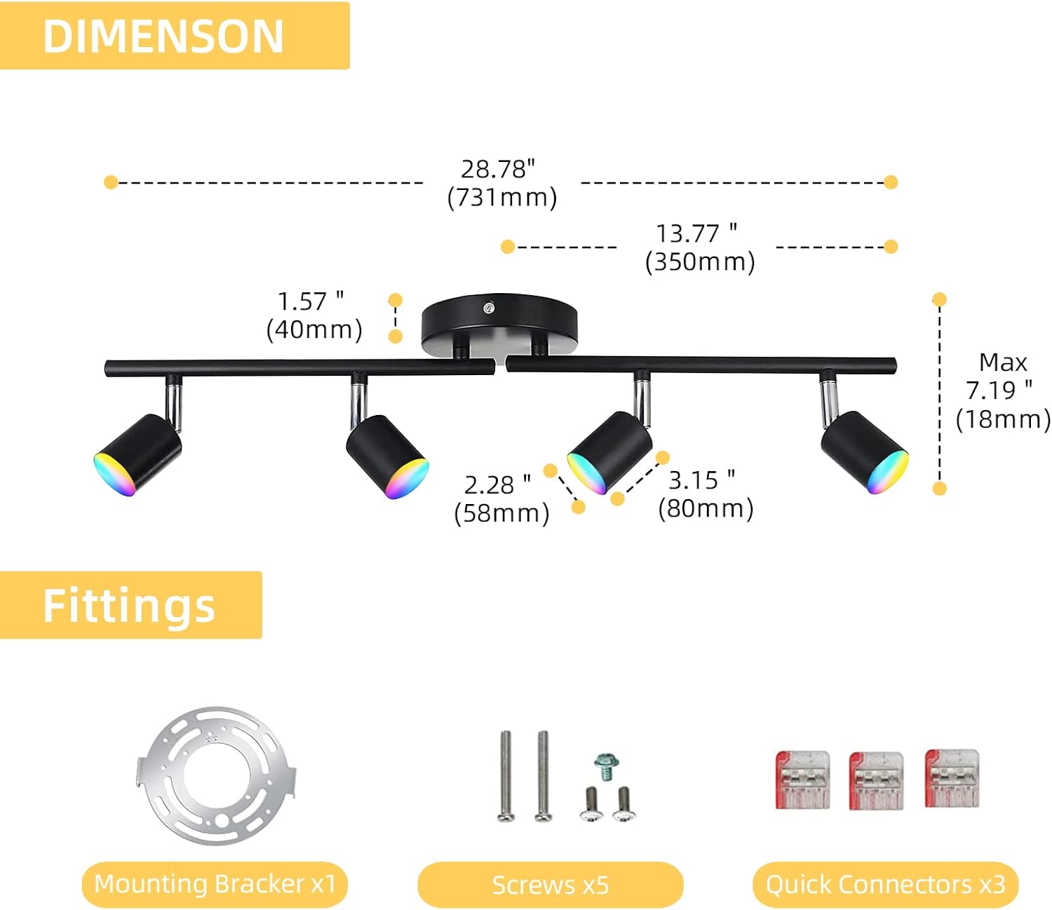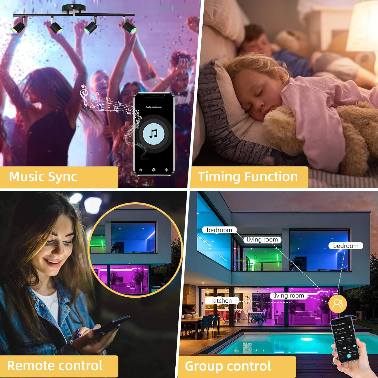 Multifunction Track Lighting 16 million multi-gamet colors Changes with Music Memory function APP One-click Control Timing Tunction Compatible with Alexa/Google Home/Siri