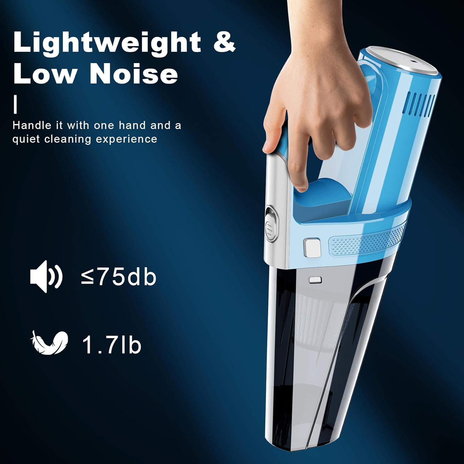 Lightweight & Compatible with All Cars: The portable car vacuum adopts ergonomic design and is lightweight at 1.75 pounds, a simple one-hand operation to quickly clean your car. Our hand held vacuum suits all cars, trucks, vans and SUVs with car cigarette lighter.