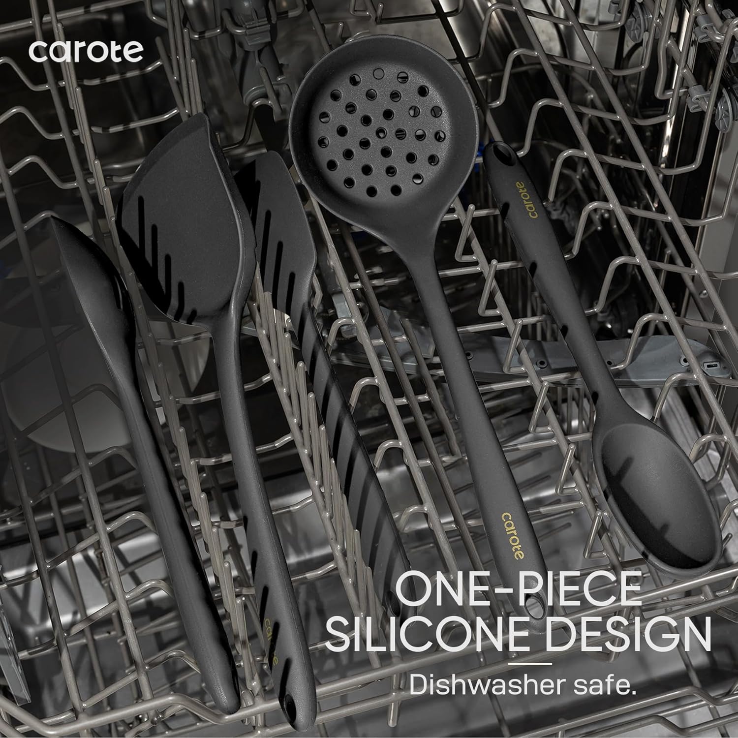 CAROTE Kitchen Utensil Set for Nonstick Cookware, Heat Resistant Silicone Cooking Utensils Set 10pcs, Dark Grey, Oderless Spatula, Turner