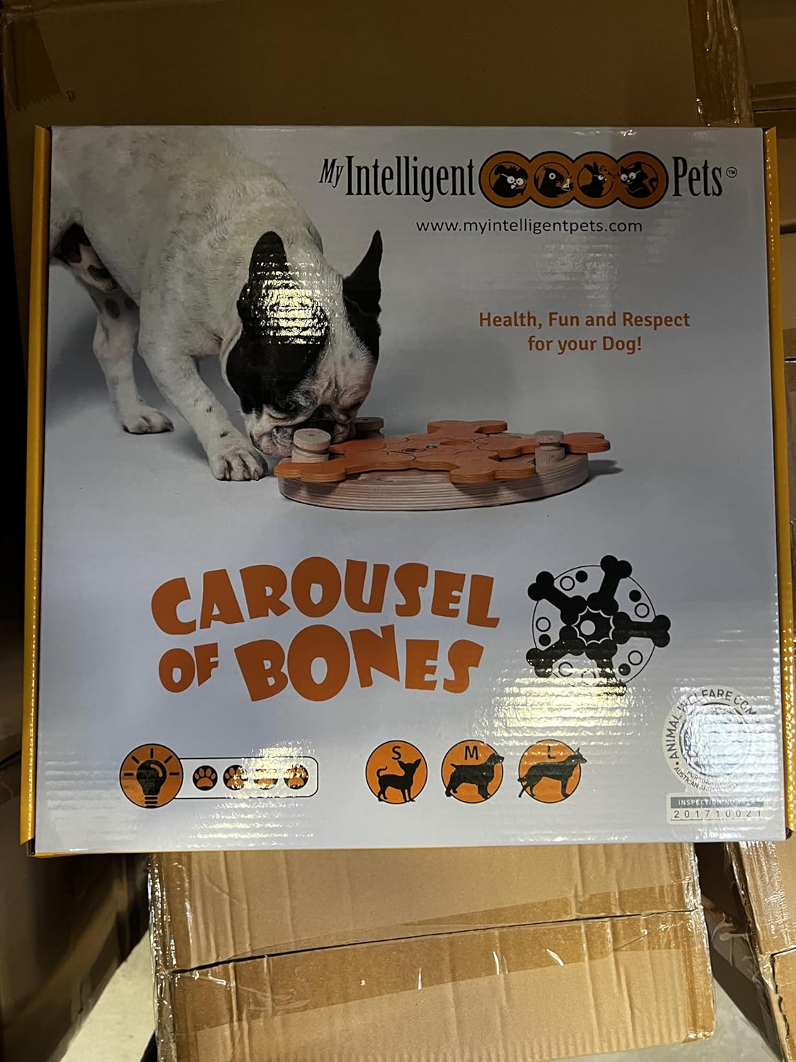 Challenging Brain Game for Dogs: Features a disk-shaped puzzle with a movable bone-shaped platform, designed to hide treats and engage your dog’s mind in problem-solving.