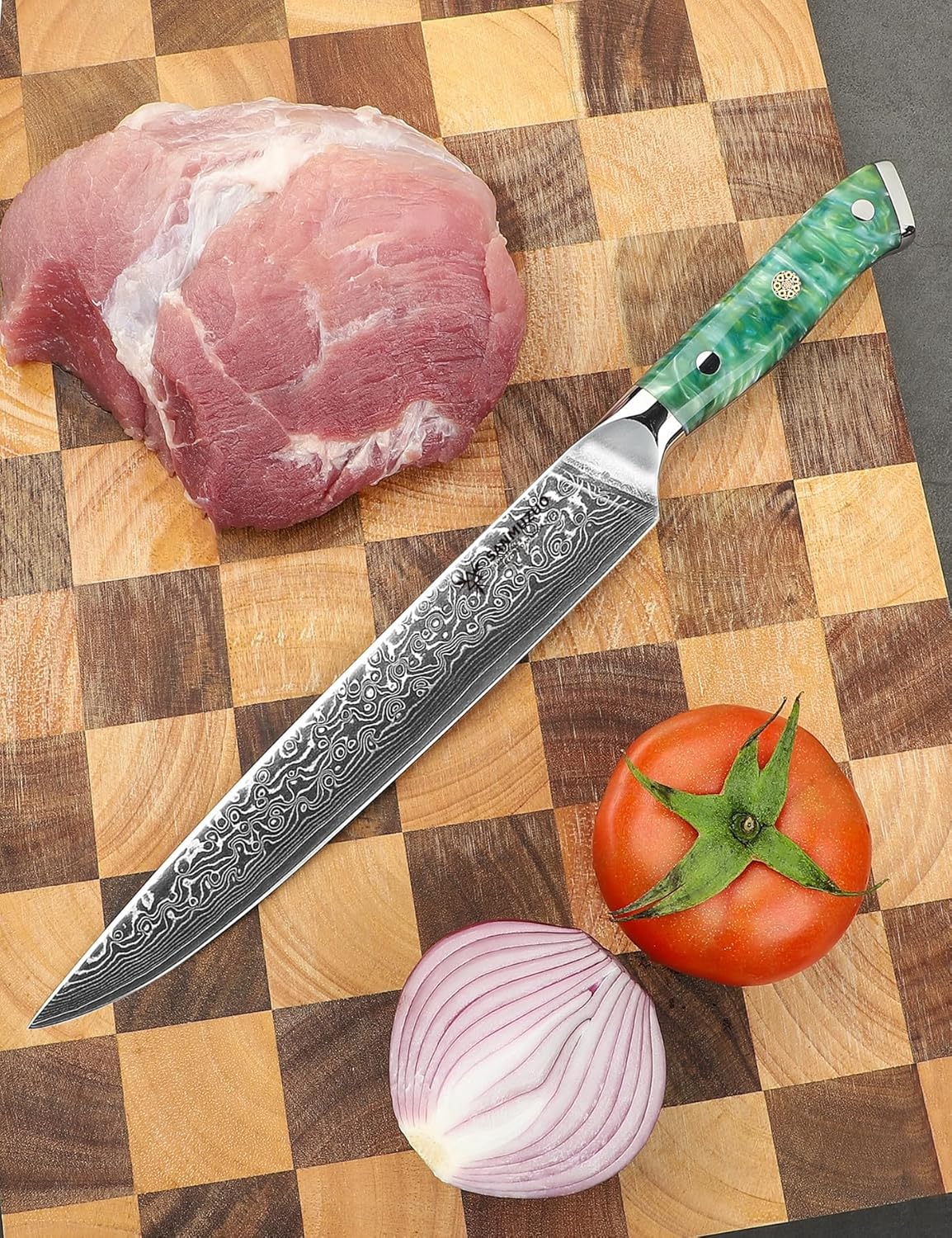 Carving Knife – 9 inch Kitchen Meat Cutting Slicing Knife- Xuan Series – VG10 Damascus Steel with Resin Handle (Jade Green)