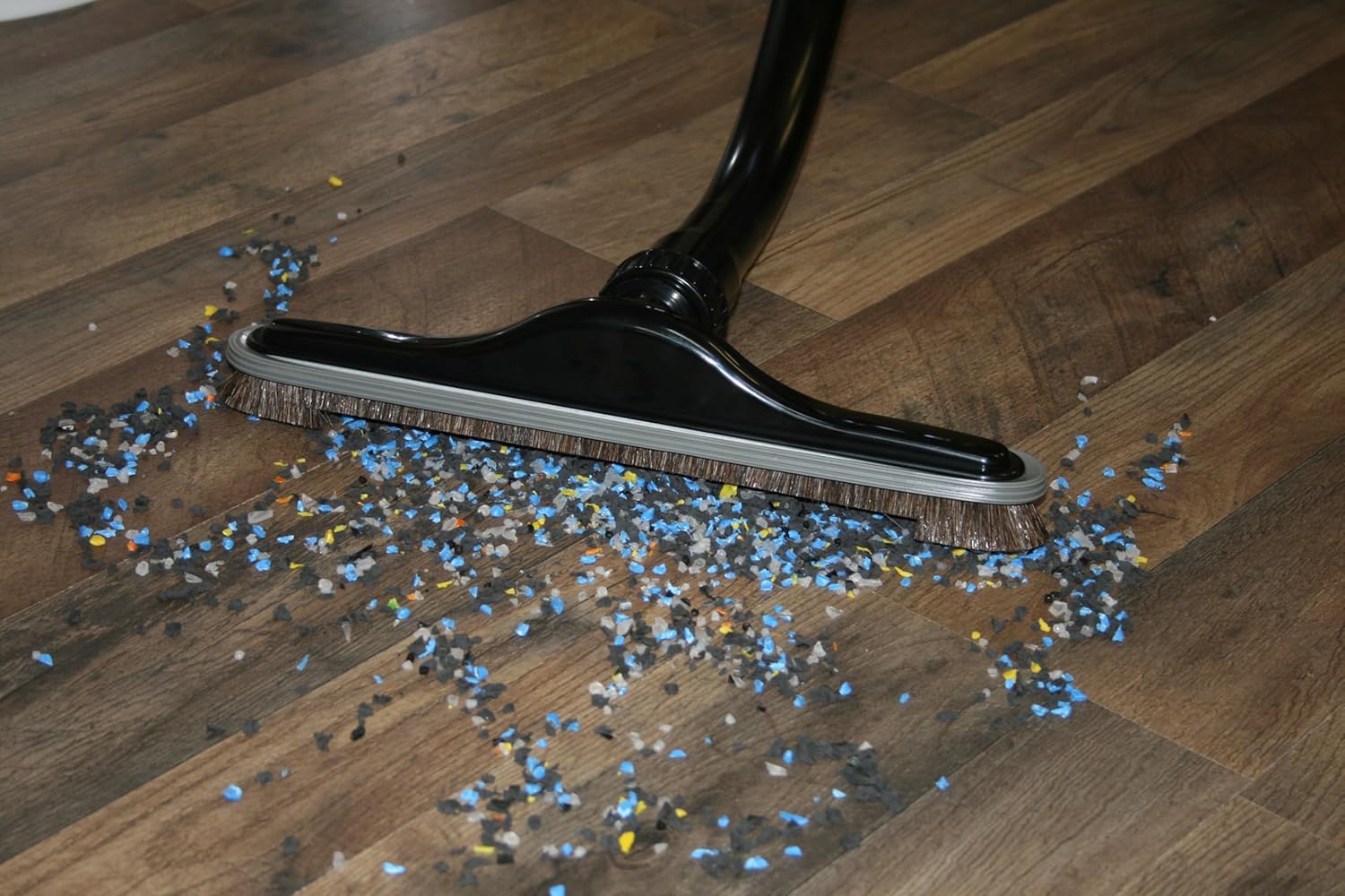 The robust natural fill completely encompassed the base of the brush and is designed to insure no damage to floor surfaces including hard wood, tile, polished stone, vinyl, nor laminate. A window cut to the front face of the brush allows the vacuum to capture larger debris rather than push it around as with a broom. These features make this tool ideal for hardwood floor refinishers