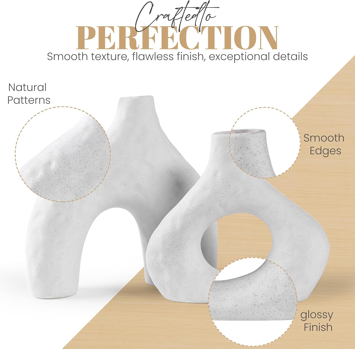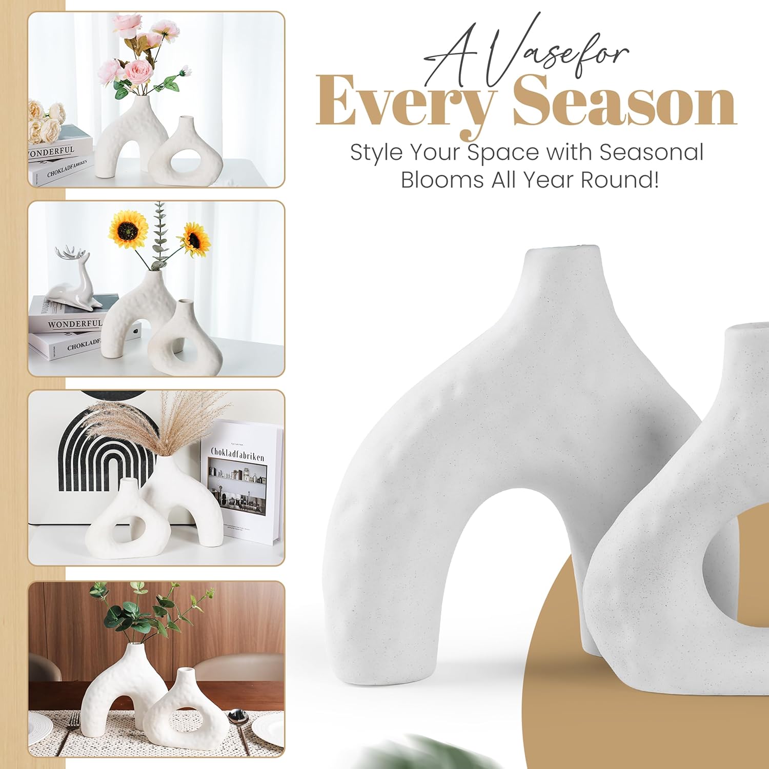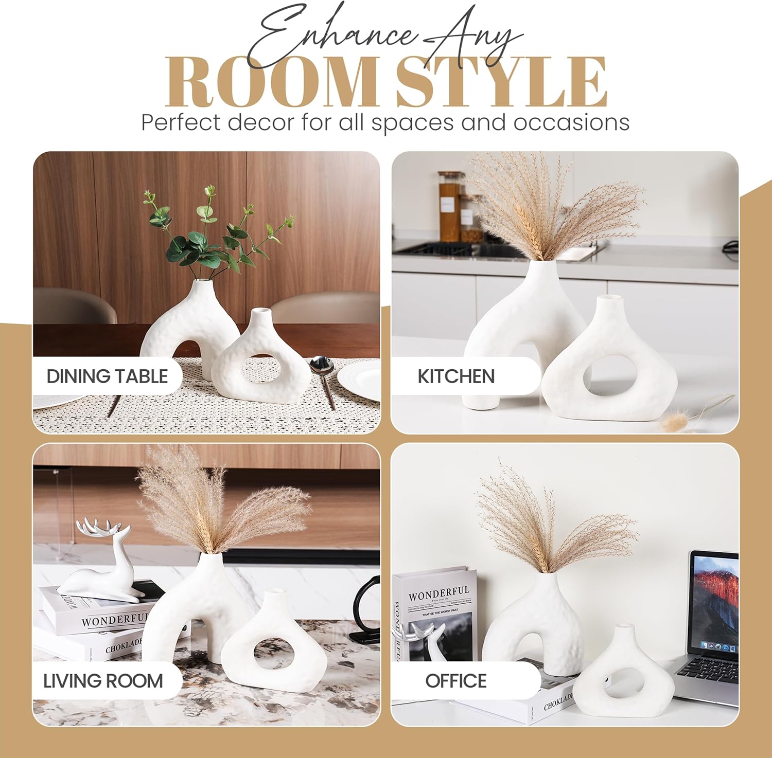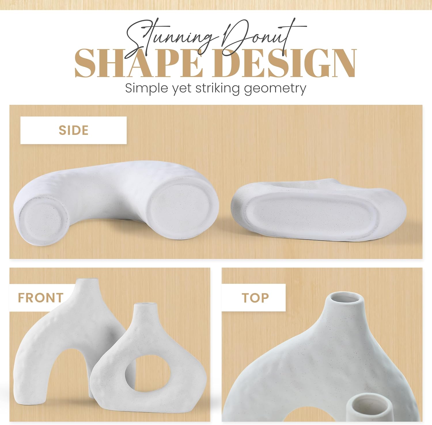 Enhance your living space with the timeless elegance of our Donut Vase, a must-have for modern, minimalist, and boho-inspired decor. Crafted to blend seamlessly into any interior, its sleek design and neutral tones (available in white and black) make it perfect for living room decor, coffee table centerpieces, office desks, and bookshelves. Its versatility shines in every corner of your home, from bathroom countertops and kitchen shelves to entryways and fireplace mantels.