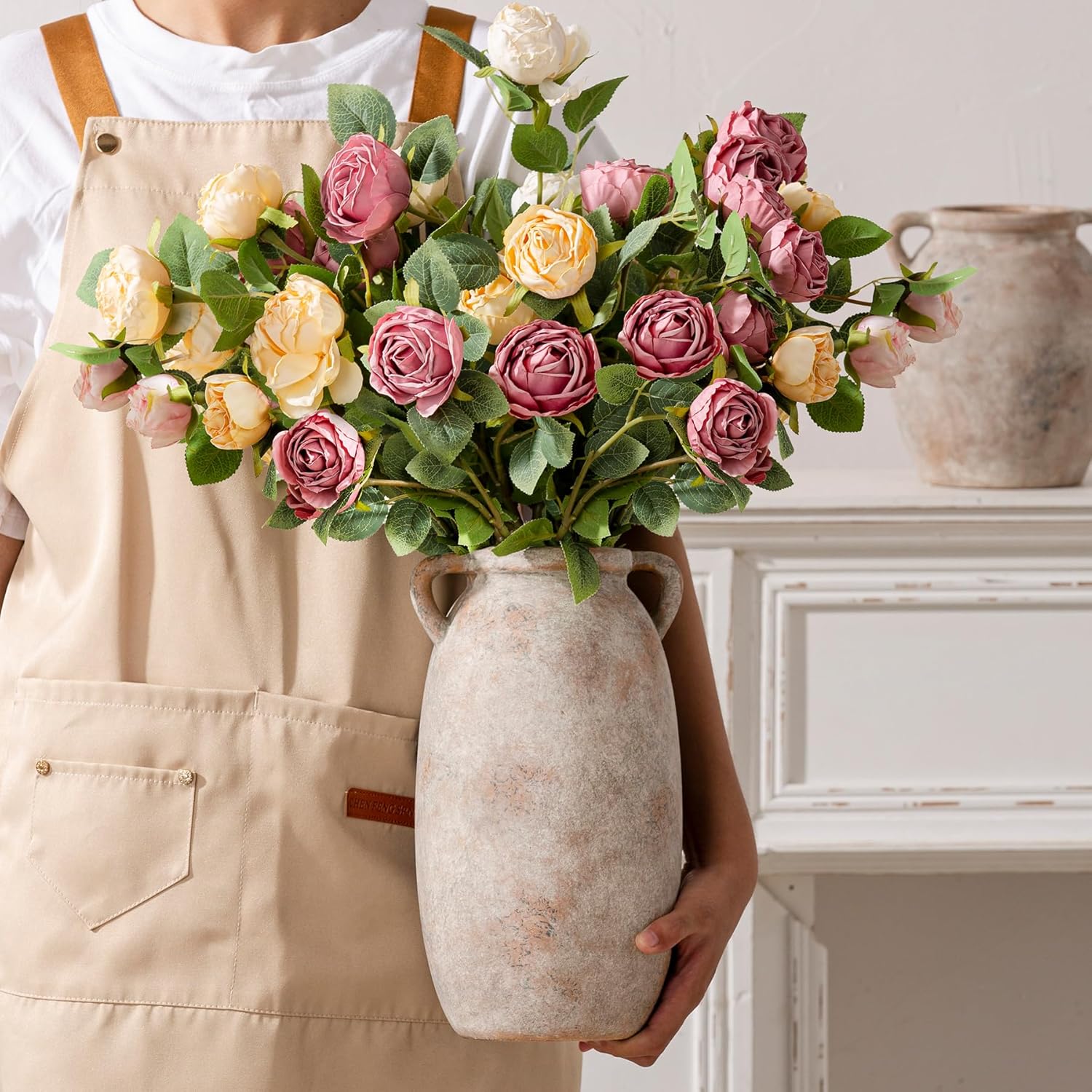 【Handcrafted Ceramic Artistry】Made of high-quality, 100% hand-painted ceramic with high-temperature firing, this vase combines durability with unique artistry. Its waterproof interior allows for fresh flowers, while the rustic terracotta finish adds timeless charm.