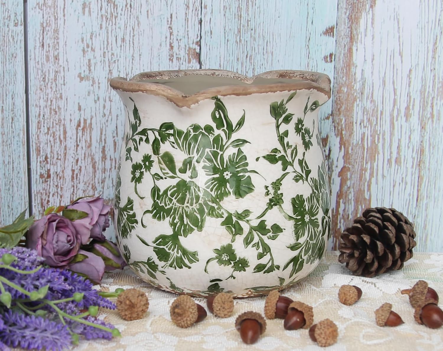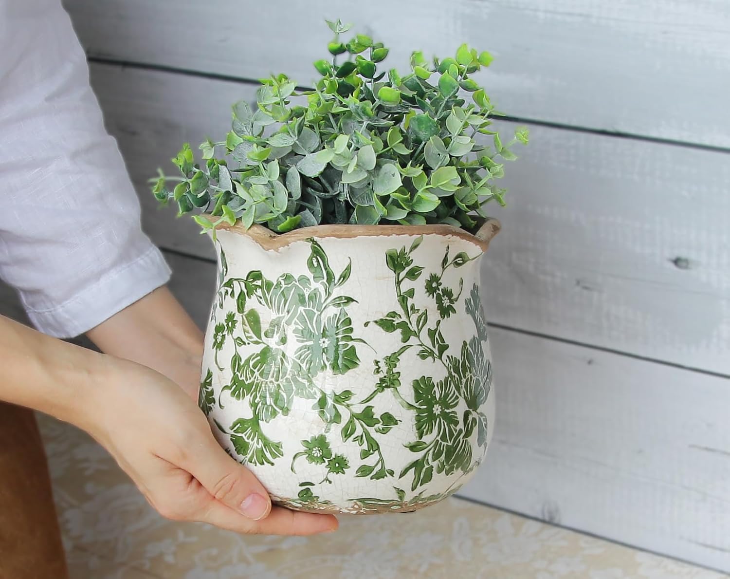 VINTAGE FLOWER POT WITH DISTRESSED DETAILS: The slightly distressed pattern is designed to create a rustic, shabby chic aesthetic that adds character and warmth to your home décor.