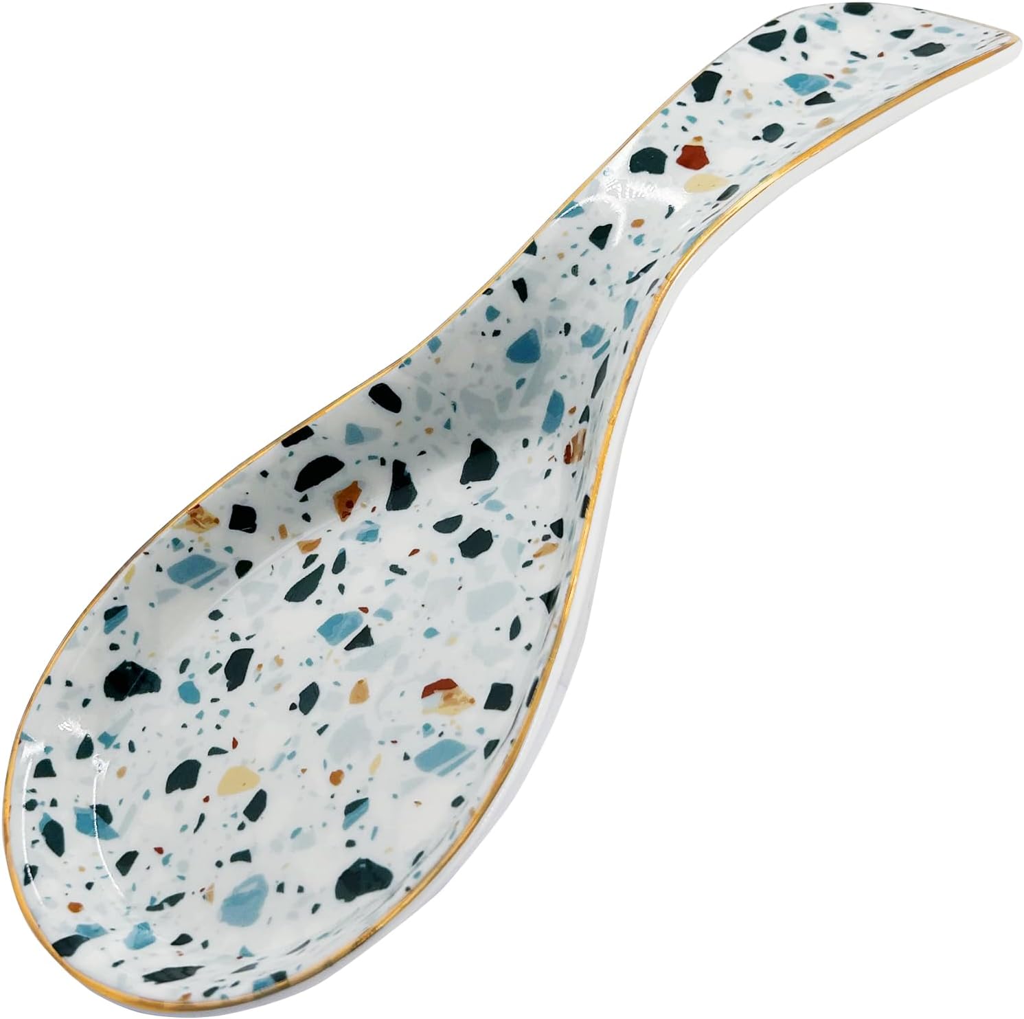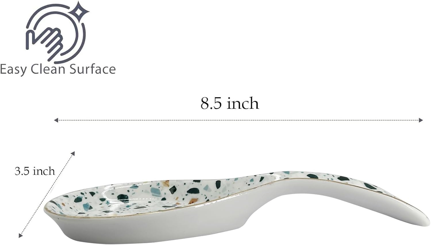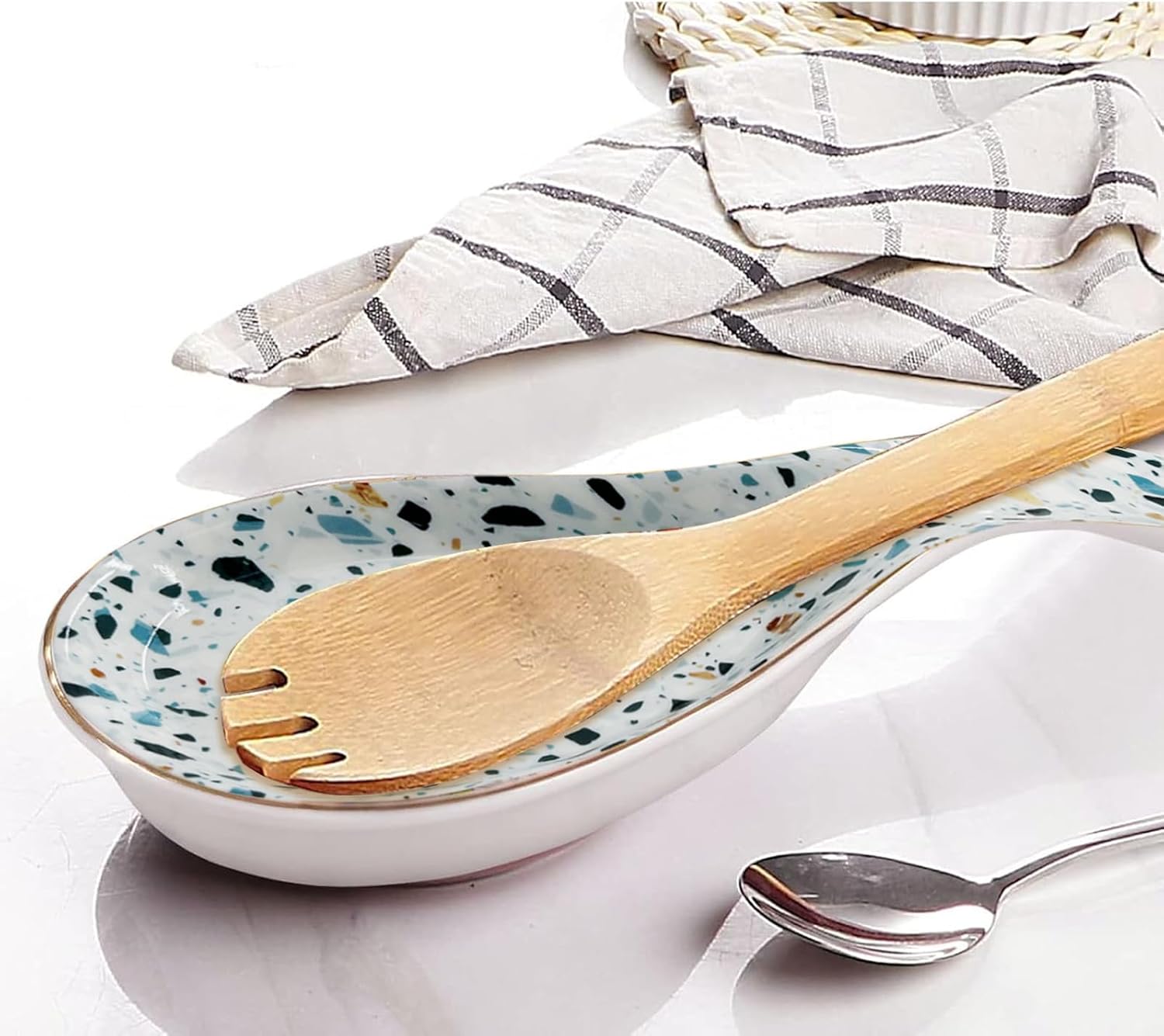 Stylish Kitchen Decoration The exquisite kitchen spoon rest holder organizer is practical and beautiful to make your kitchen countertops look tidy. Package includes: the package comes with 1 piece ceramic spoon rest which is nice for resting large and small spoons, teaspoon, silverware, soup ladles, spatulas, and other kitchen cooking utensils to keep your counters clean.