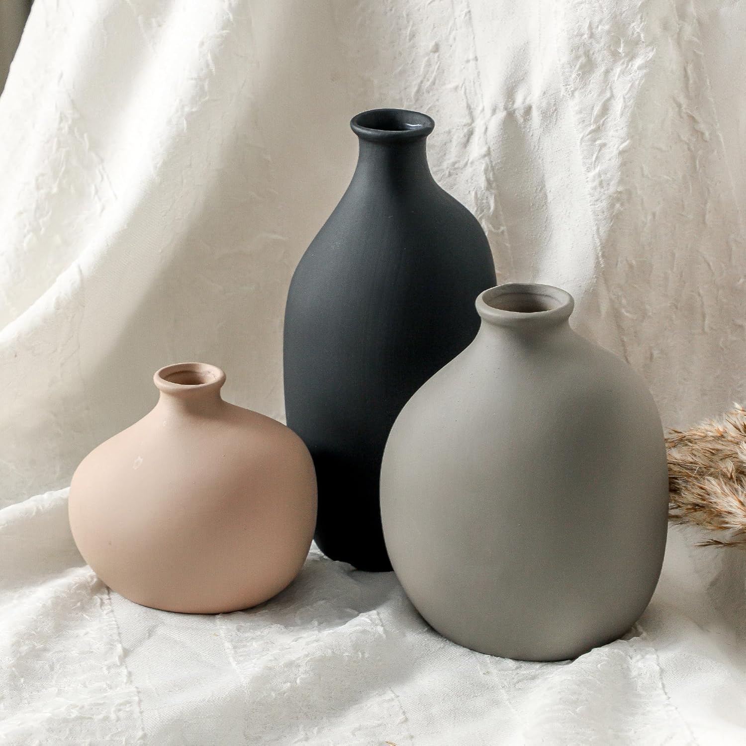 Masterful Ceramic Craftsmanship – This set of 3 vases is crafted from premium clay and fired for durability. With a waterproof interior and corrosion-resistant surface, they’re perfect for fresh, dried, or faux flowers. Each vase features a unique shape and tone, creating a balanced, harmonious display in any room.