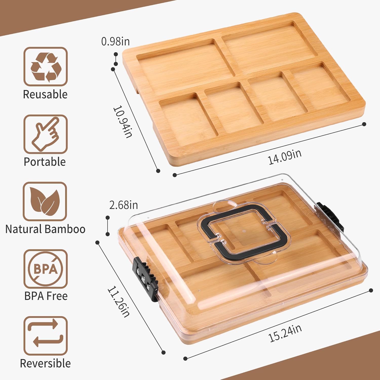 Portable Charcuterie Boards: With a handle and locking lid, this cheese board keeps food secure during transport, perfect for travel, beach trips, camping, picnics, parties, and dates.