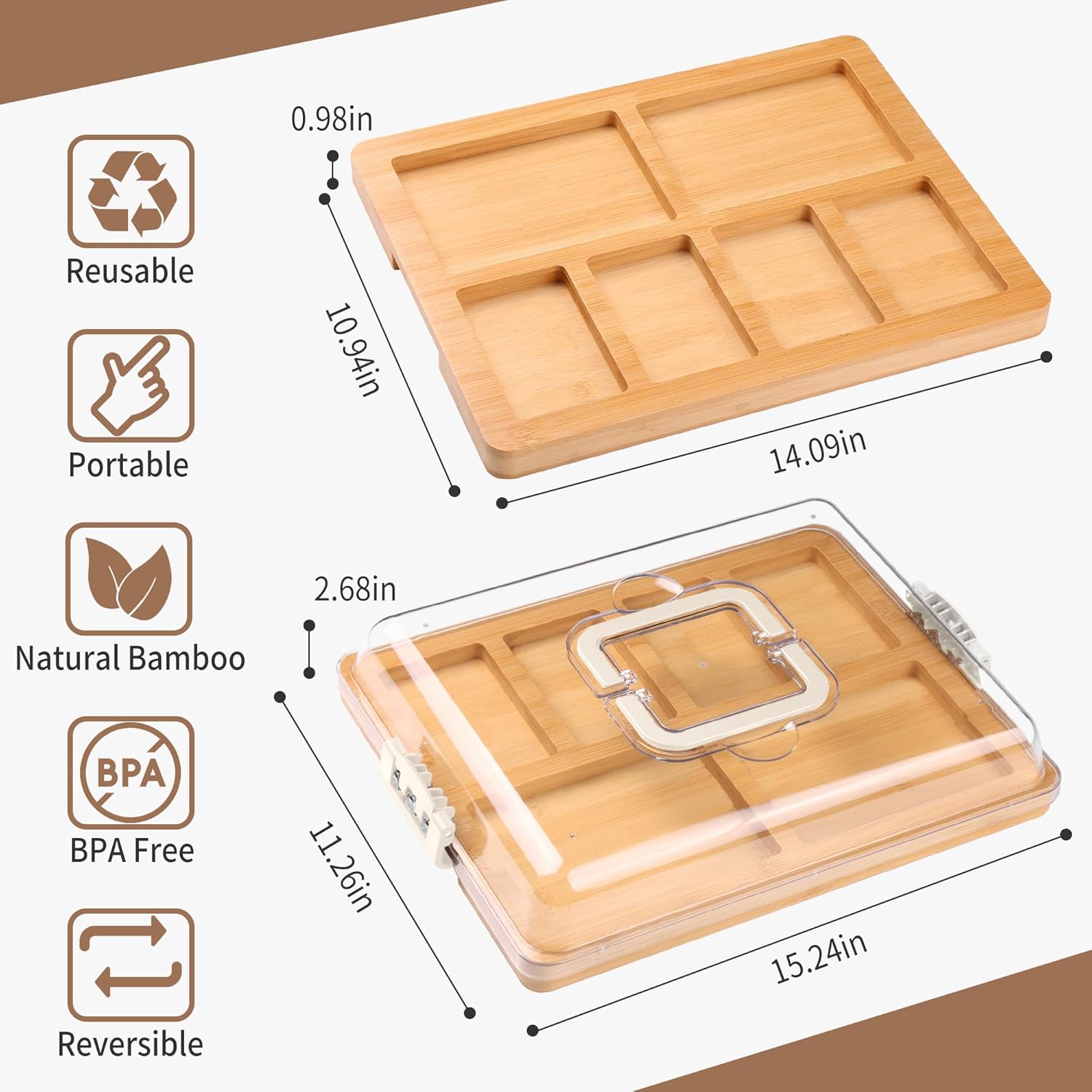 Portable Charcuterie Boards: With a handle and locking lid, this cheese board keeps food secure during transport, perfect for travel, beach trips, camping, picnics, parties, and dates.