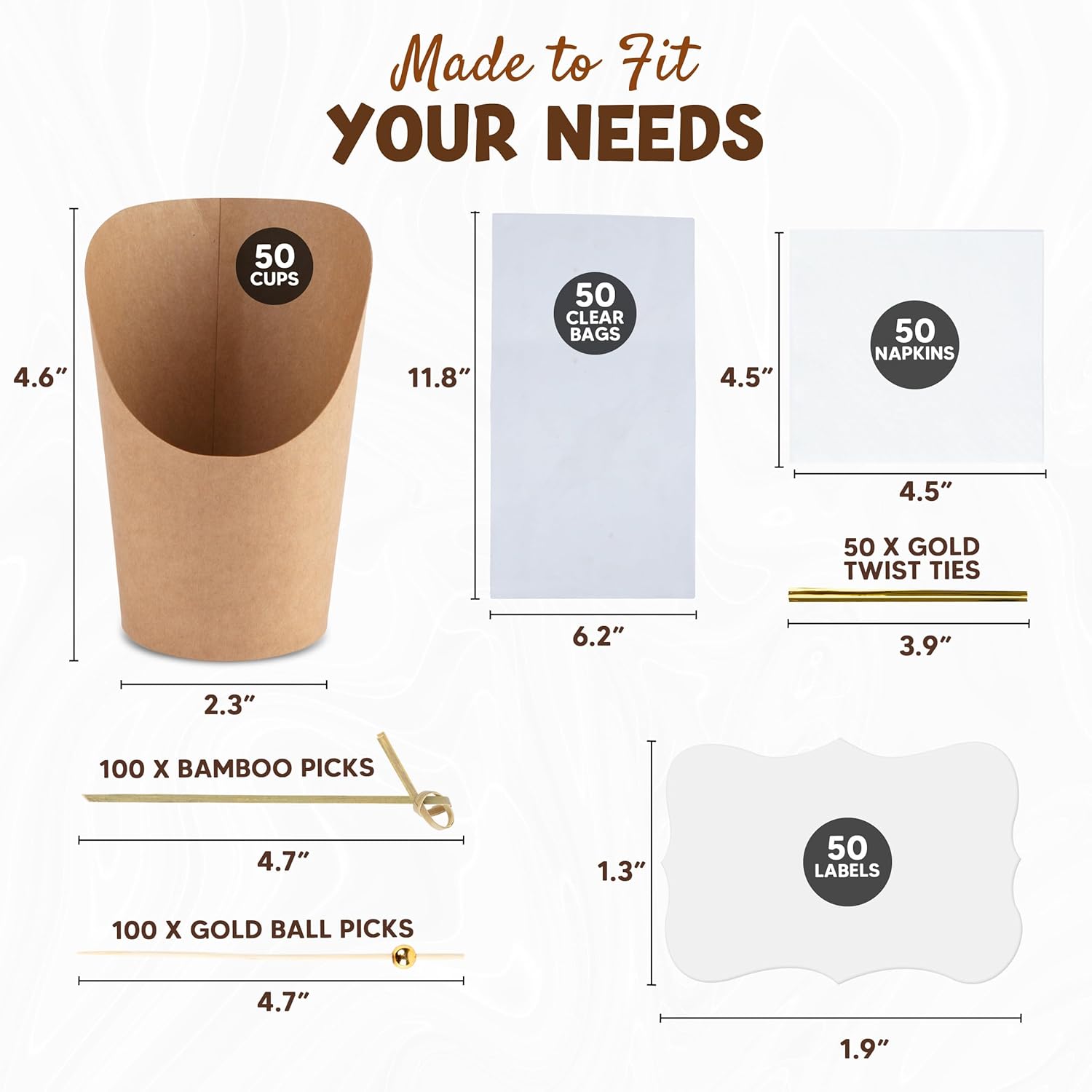 Comprehensive 450-Pcs Set: This set has no less than 450 pieces of cocktail party supplies that make every event become unforgettable. The set includes 50 x 14oz charcuterie cups, 50 x labels, 50 x bags, 50 x gold twist ties, 50 napkins, 100 x bamboo knot cocktail picks, and 100 x bamboo cocktail picks with gold pearls.
