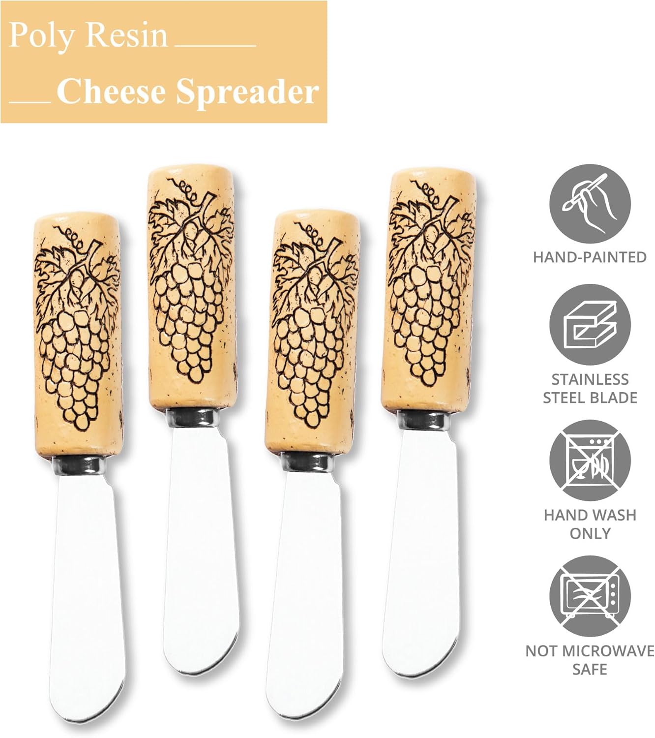 Hand-Painted Resin Handle: Each spreader handle is meticulously hand-painted with vibrant and intricate designs, ensuring a unique and eye-catching addition to your table setup.