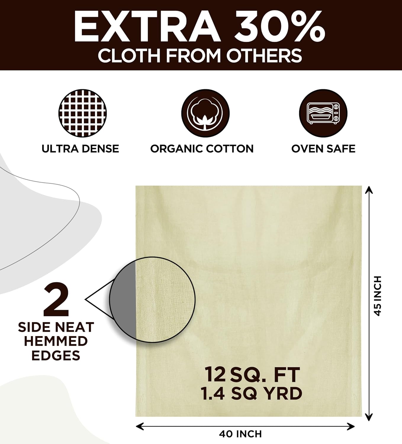 CUT AS PER YOUR NEED: Our 40″ x 45″ (1.4 sq yard) muslin cloths offer 30% more fabric than competitors (1 sq yard).with two side hemmed edges,offers versatility with no pre-cuts. Cut it freely to your desired size for spice bag, nut milk bags or paneer Cheese making reducing waste.