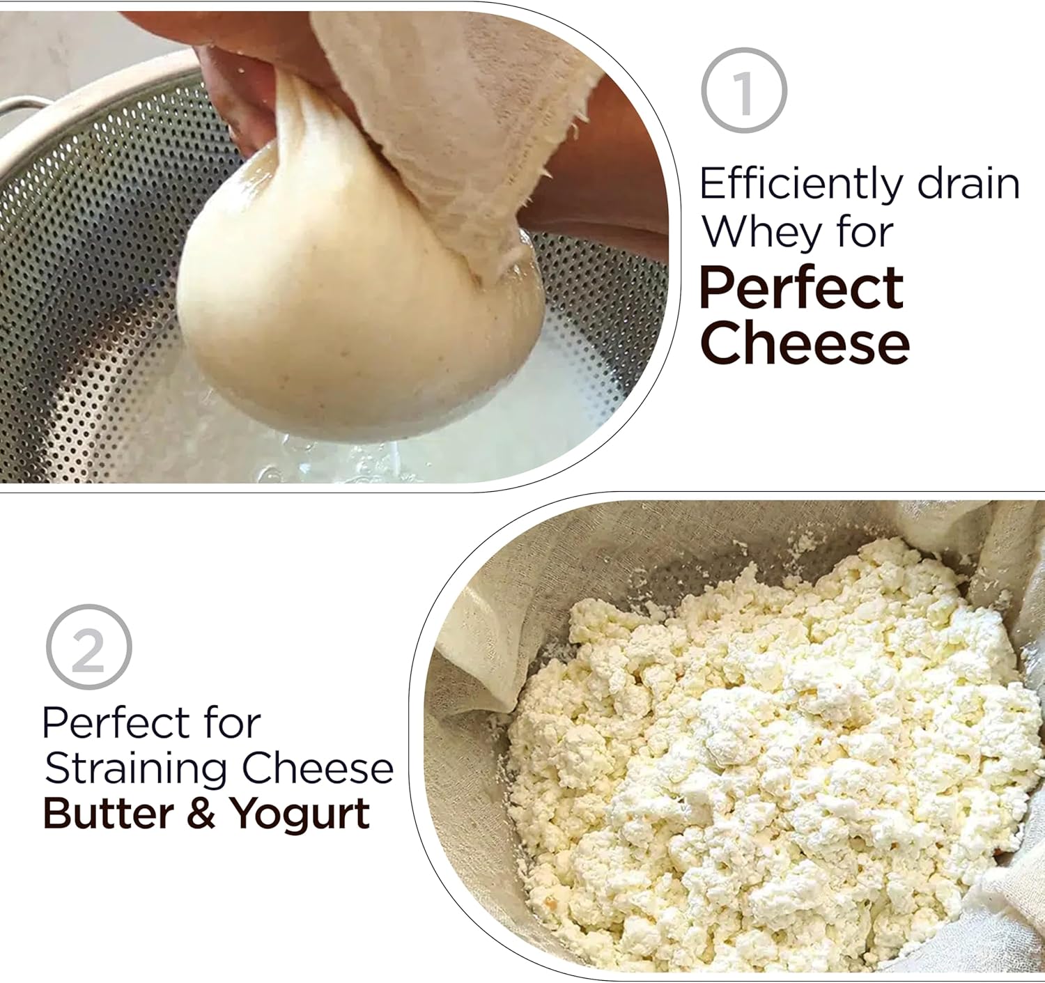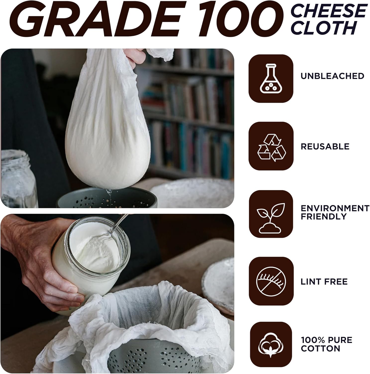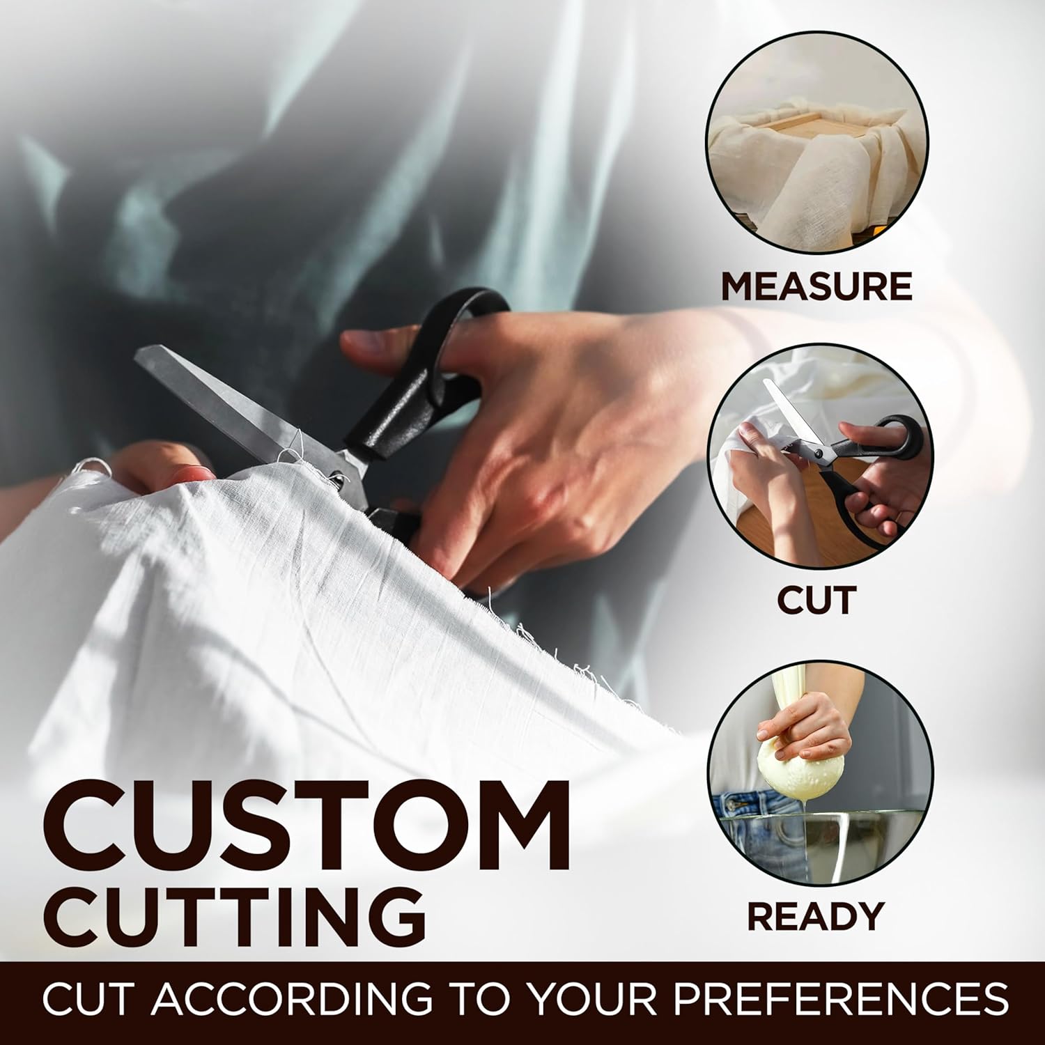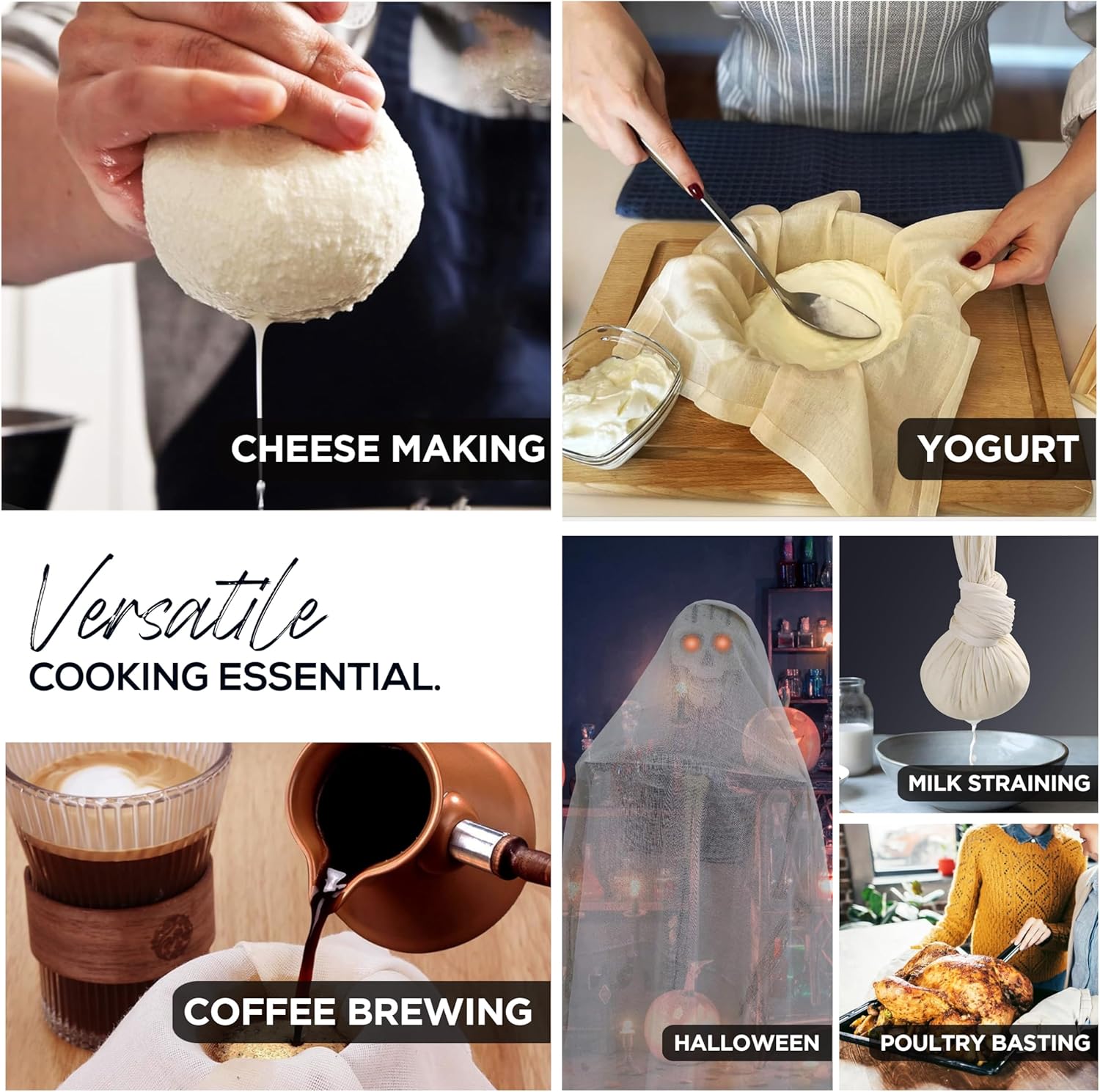 100% NATURAL UNBLEACHED COTTON: Indulge in our chef-grade cheesecloth, woven from 100% unbleached organic cotton. Free from chemicals, bleach, or dyes, it ensures food safety and reliability. ideal for cottage cheese, yogurt, and turkey and more without leaving any stains.