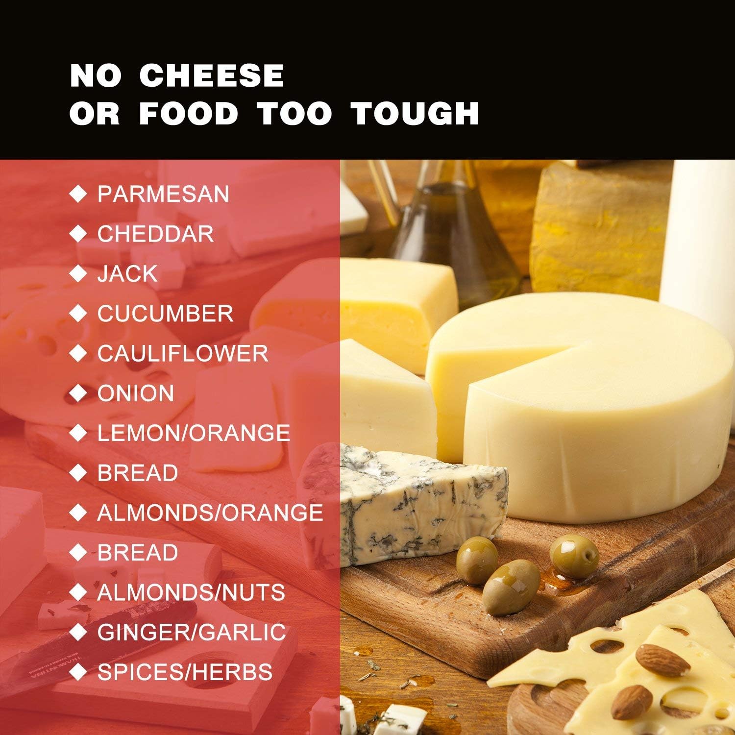 RAZOR SHARP STAINLESS STEEL BLADES – Professional quality kitchen utensil that makes light work of food prep for everyone. Fine and coarse grates will cut through food like a knife. Our customers also grate cucumber, cabbage, carrots, cauliflower, onion, potato, zucchini and other vegetables.