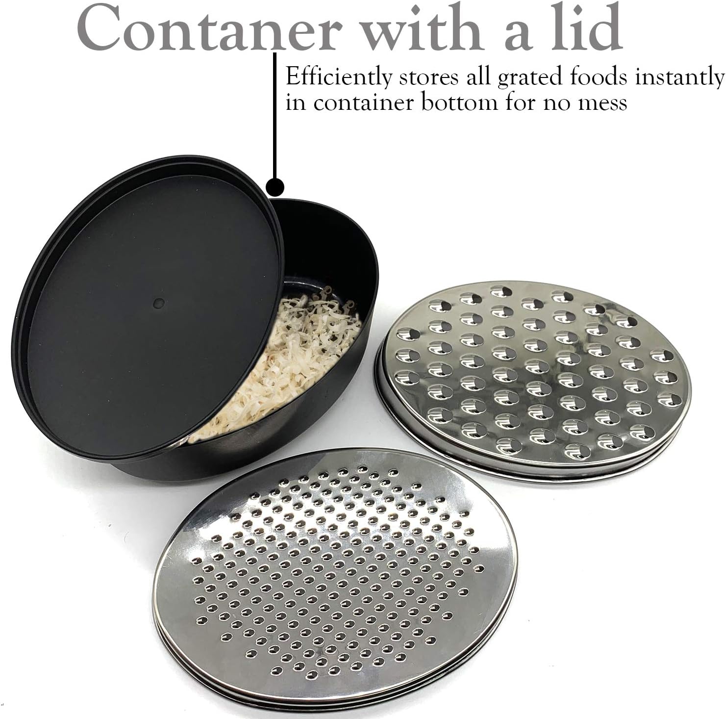 GRATE ALL TYPES OF CHEESE – One simple cheese grater with container that will completely improve the taste and texture of what you prepare. Try it with Parmesan, Cheddar, Monterey Jack, Wisconsin, Bergenost, Colby-Jack, Edam, Locatelli, Liederkranz, Muenster and more.
