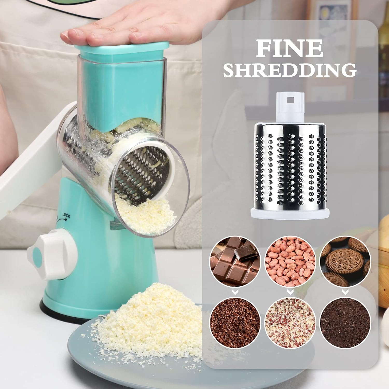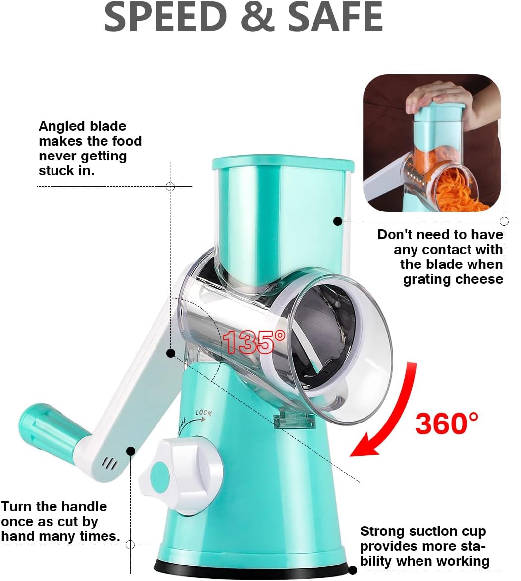 Grate, slice, shred, and grind with remarkable ease: Featuring three meticulously crafted blades, this cheese grater makes grating, slicing, shredding, and grinding a breeze. The all-stainless steel drum blade not only boosts its strength and durability but also delivers smoother, more precise cuts for a variety of foods. Plus, the blade requires no assembly and includes an enhanced number of knife edges, making food preparation faster and more efficient than ever