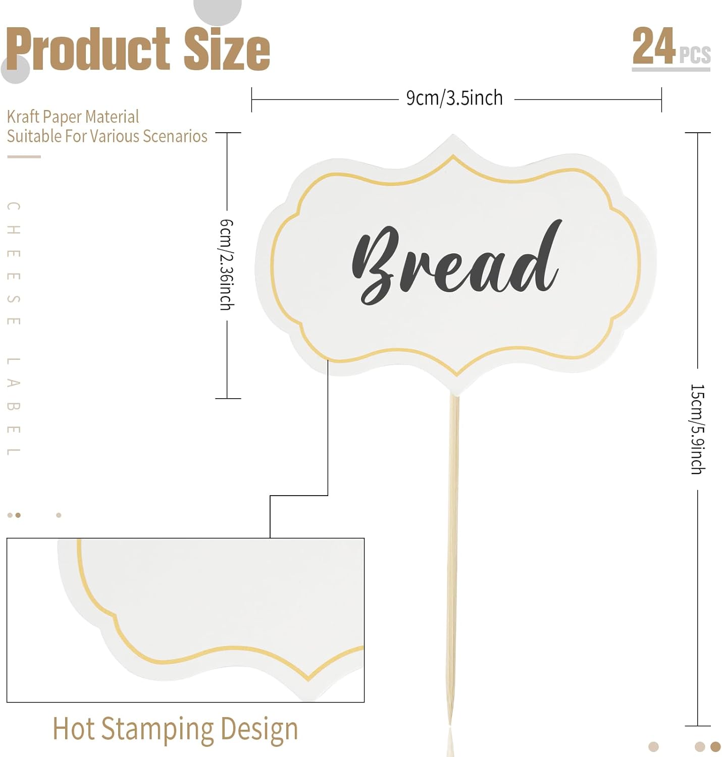 Premium Materail: These cheese labels are made of quality paper cardstock and bamboo, with smooth surfaces, sturdy and serviceable, double side blank label bamboo pick which can stick directly into cheese, meats or other appetizers, make them look more refined.