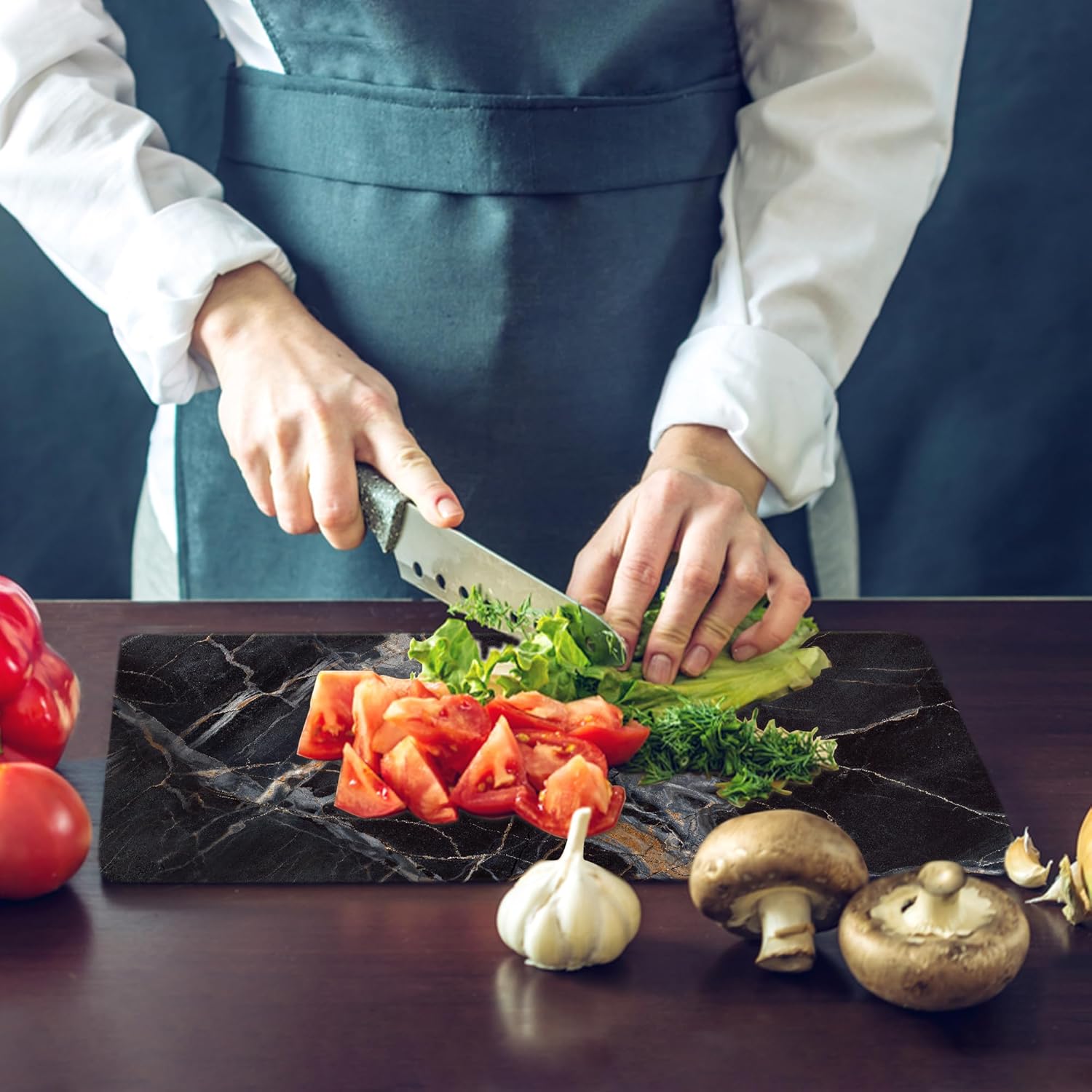 Heat Resistant & Dishwasher Safe – This tempered glass chopping board work top saver has exception resistance to heat and allows you to rest your Hot pots and pans on top when serving meals to guests or family without any fears of ruining delicate surfaces.