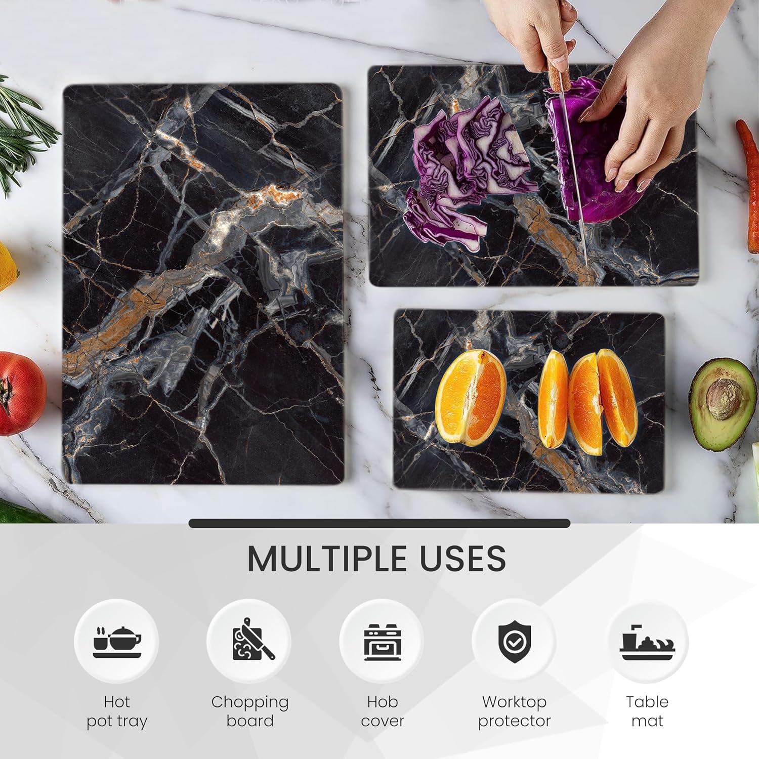 Multiple Designs for multiple uses – We have 10 beautiful designs in our heat resistant tempered glass board. This can be used for a variety of uses, as a plate mat on your dinning table, as a background for your food blogging needs for Tiktok or instagram! As a place mat for your hot dishes when serving dinner to your friends and family! As a worktop saver when working in the kitchen, as well as a chipping board. It has multiple uses and makes your kitchen look modern and elegant.