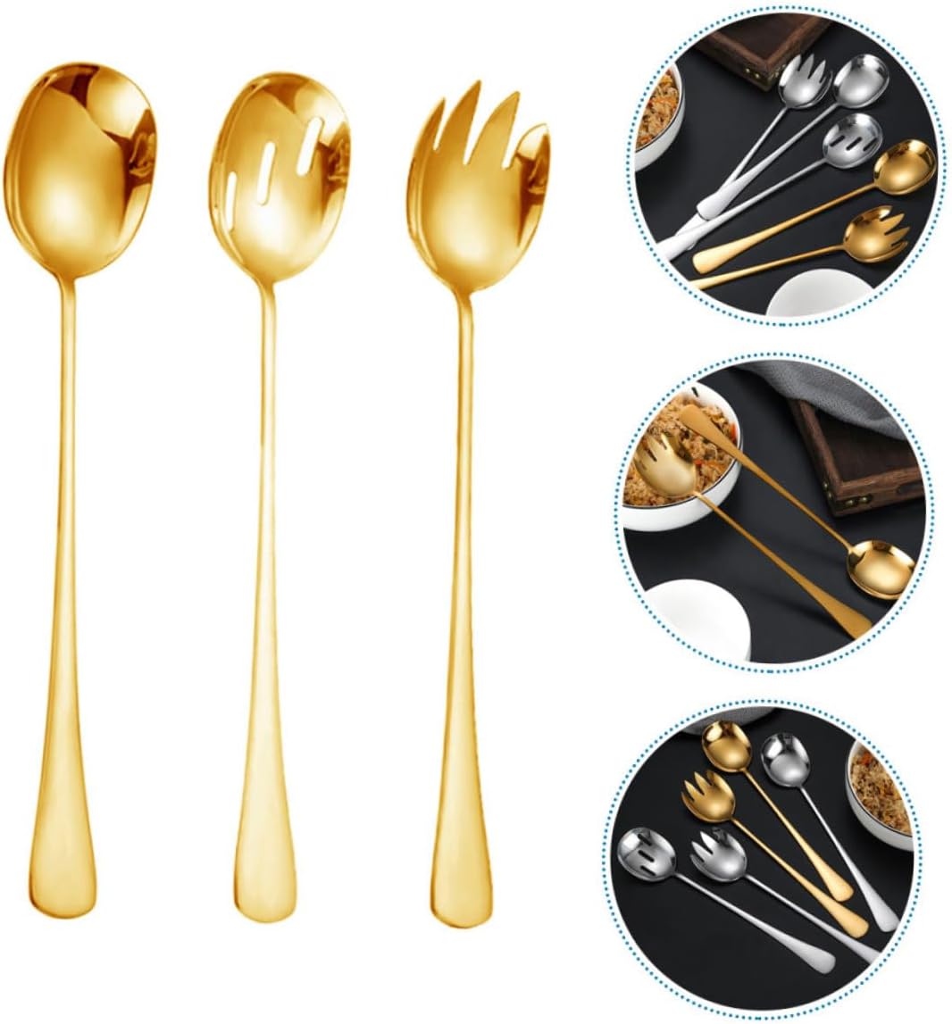 Multi-functional spoon fork:comfortable to hold, and no rough ends or sides on any of the pieces,salad spoons