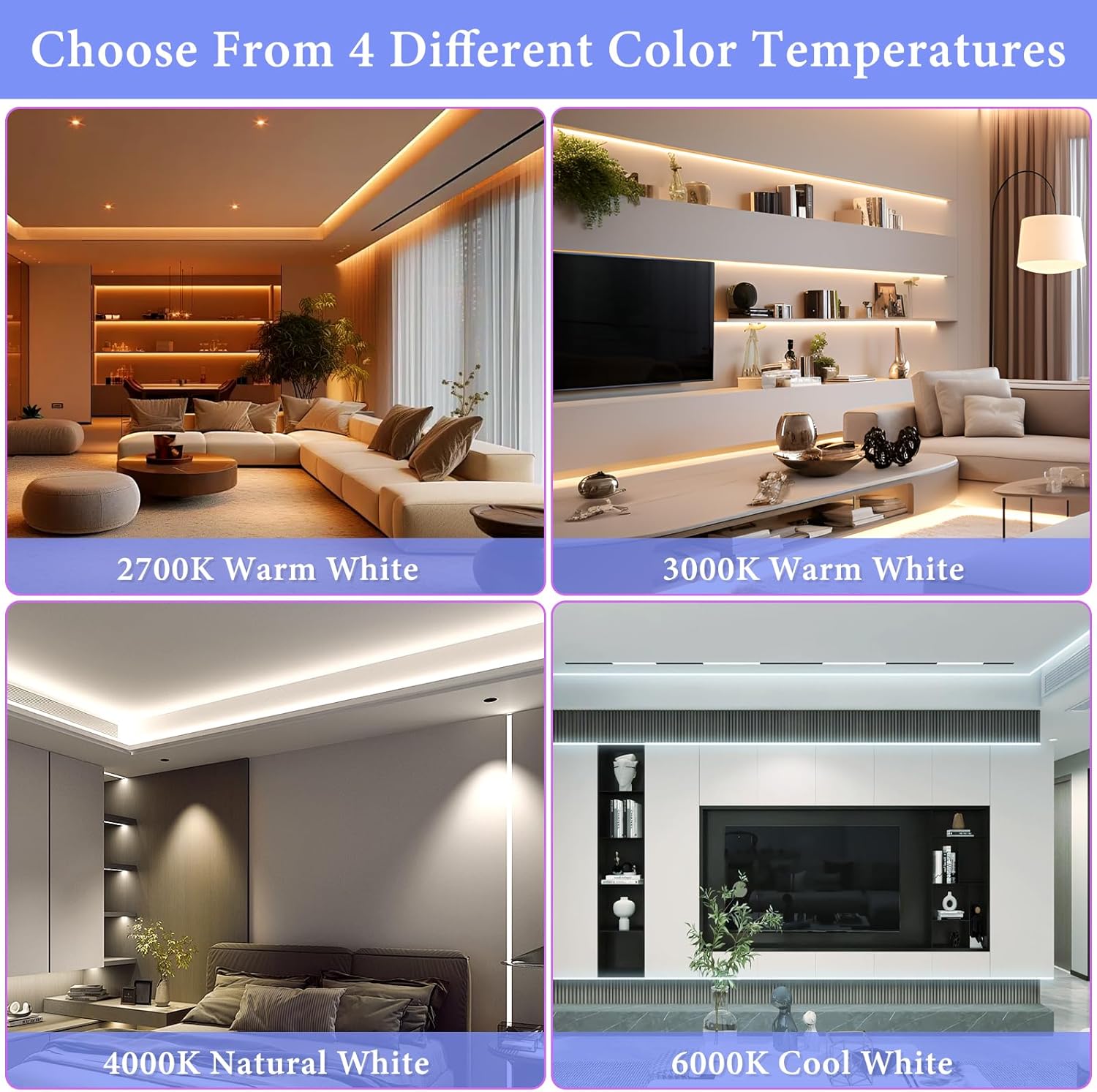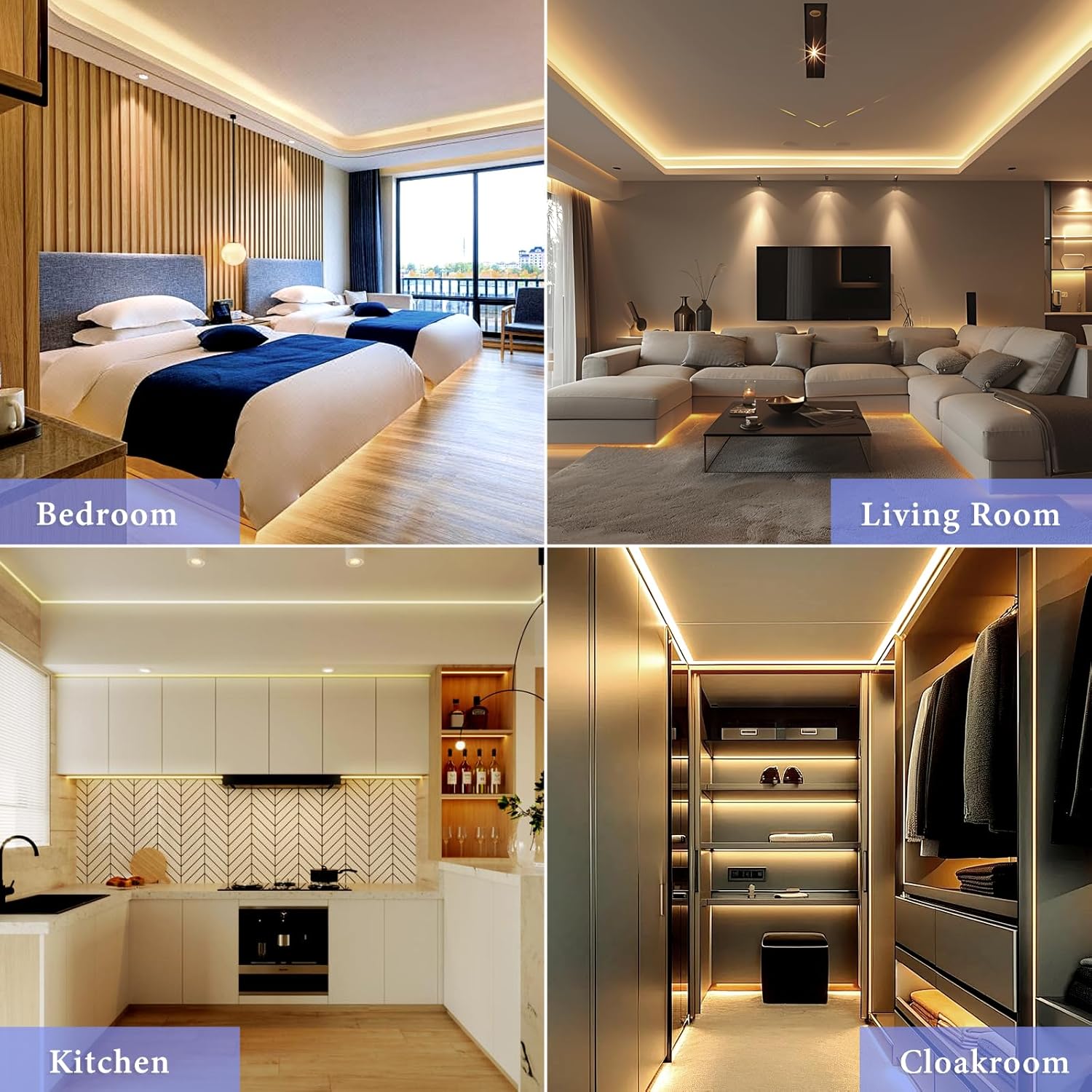 Indoor Tape Light: These IP20-rated flexible COB tape lights are suitable for bedrooms, living rooms, kitchens, under cabinets, around mirrors, bookshelves, wine racks, and more. Achieve the ideal indoor lighting solution effortlessly