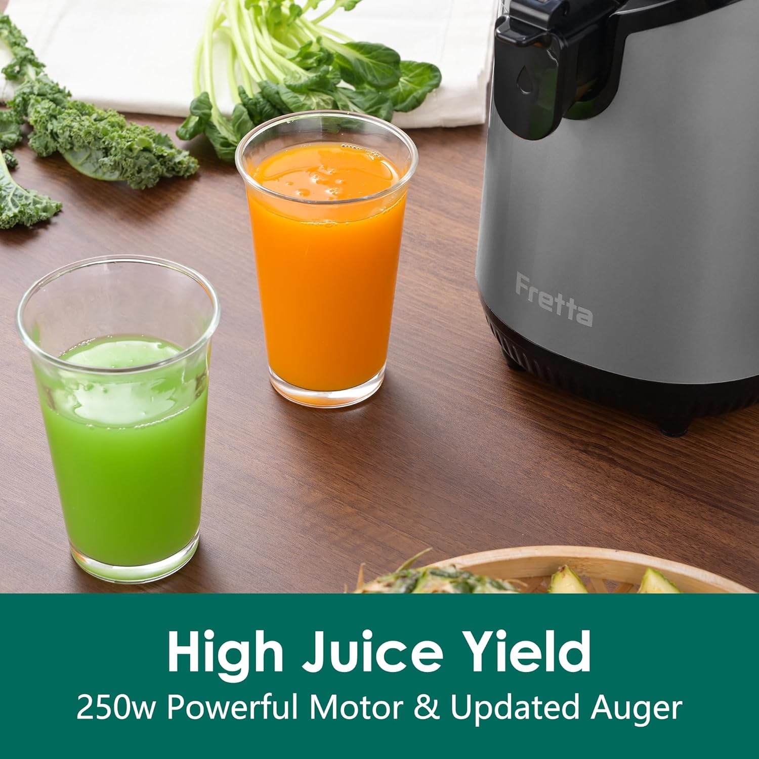 Truly BPA-Free – Responsible for Your Health: Fretta slow masticating juicers are committed to providing a safe and wholesome juicing experience, allowing you to enjoy fresh juice with peace of mind. Experience the pure flavors of your favorite fruits and vegetables