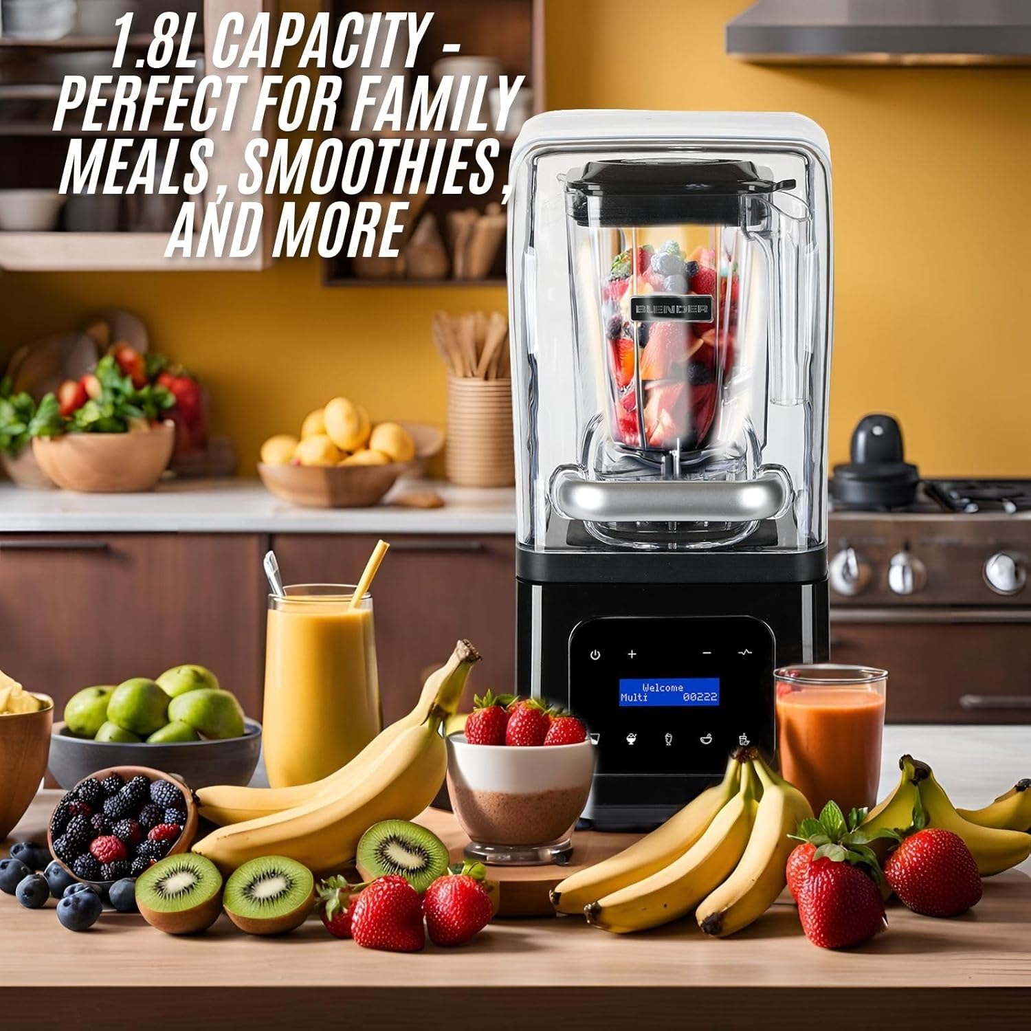 🥤【𝐋𝐚𝐫𝐠𝐞 𝐂𝐚𝐩𝐚𝐜𝐢𝐭𝐲 (𝟏.𝟖𝐋)】The 1.8L (61 oz) container is perfect for making large batches of smoothies, shakes, soups, or sauces, catering to both family and commercial needs.
