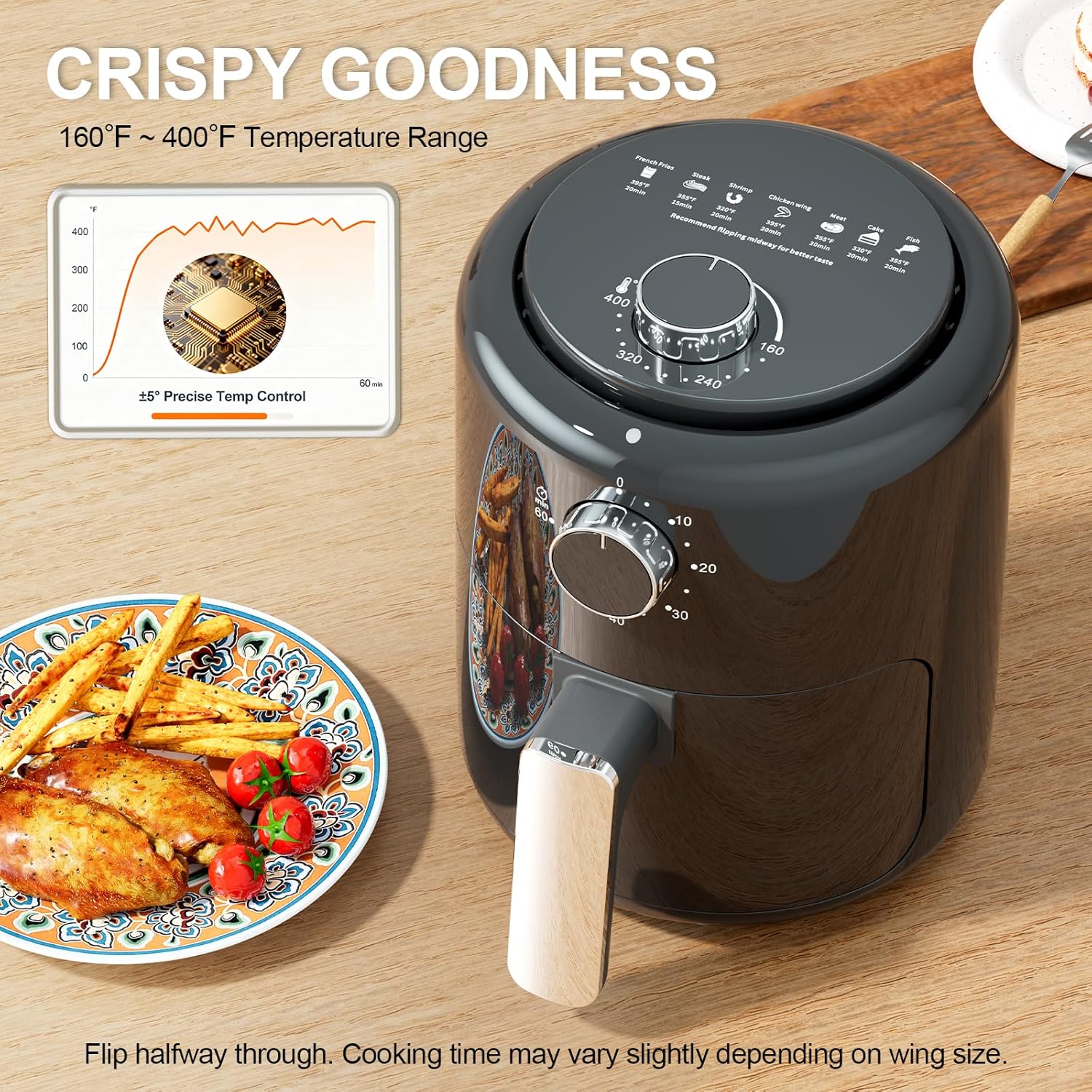 BEGINNER-FRIENDLY: Even easier cooking for seniors and beginners — just 2 simple knobs to master, no learning curve. Achieve chef-level results with effortless steps. This compact small air-fryer mini for one person for dorm takes on any everyday cooking challenge with ease