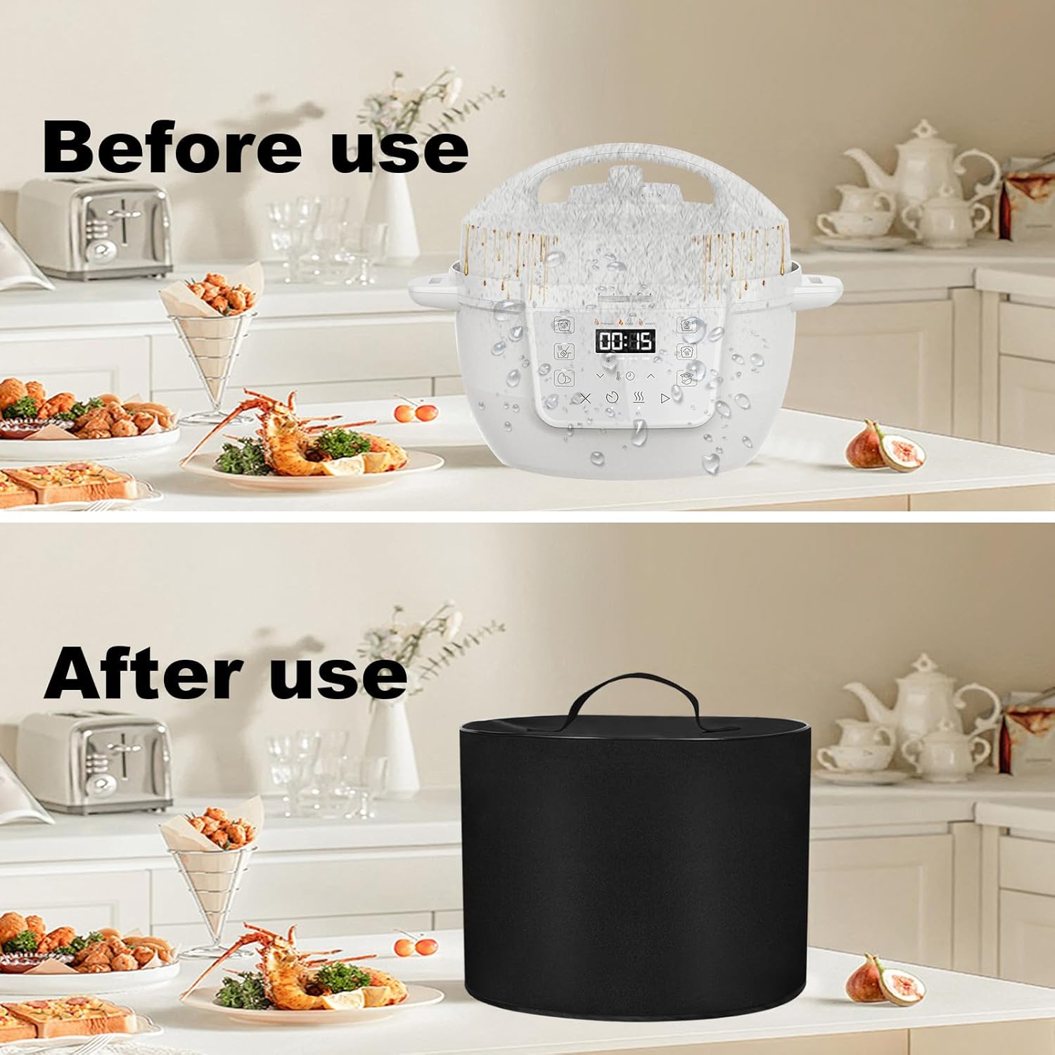 Bottom Opening:Bottom opening design of the dust cover allows air circulation to prevent water stains from staying on the cooker and causing it to deteriorate; provide reliable protection for your appliance.