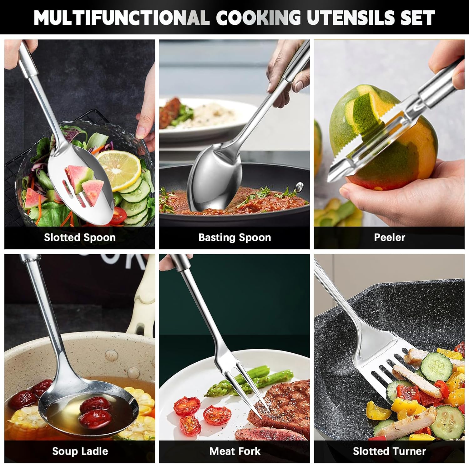 【PERFECT KITCHEN GIFT】 Our kitchen cookware utensils set is a great choice for gift giving. It is both practical and beautiful. Whether it is for a new home, wedding, birthday or holiday celebration, it can bring surprises. Versatility and rich configuration meet different cooking needs, even kitchen novices can easily get started. Whether it is given to relatives, friends or colleagues, this kitchen tool set can add a sense of convenience and happiness to each other’s lives.