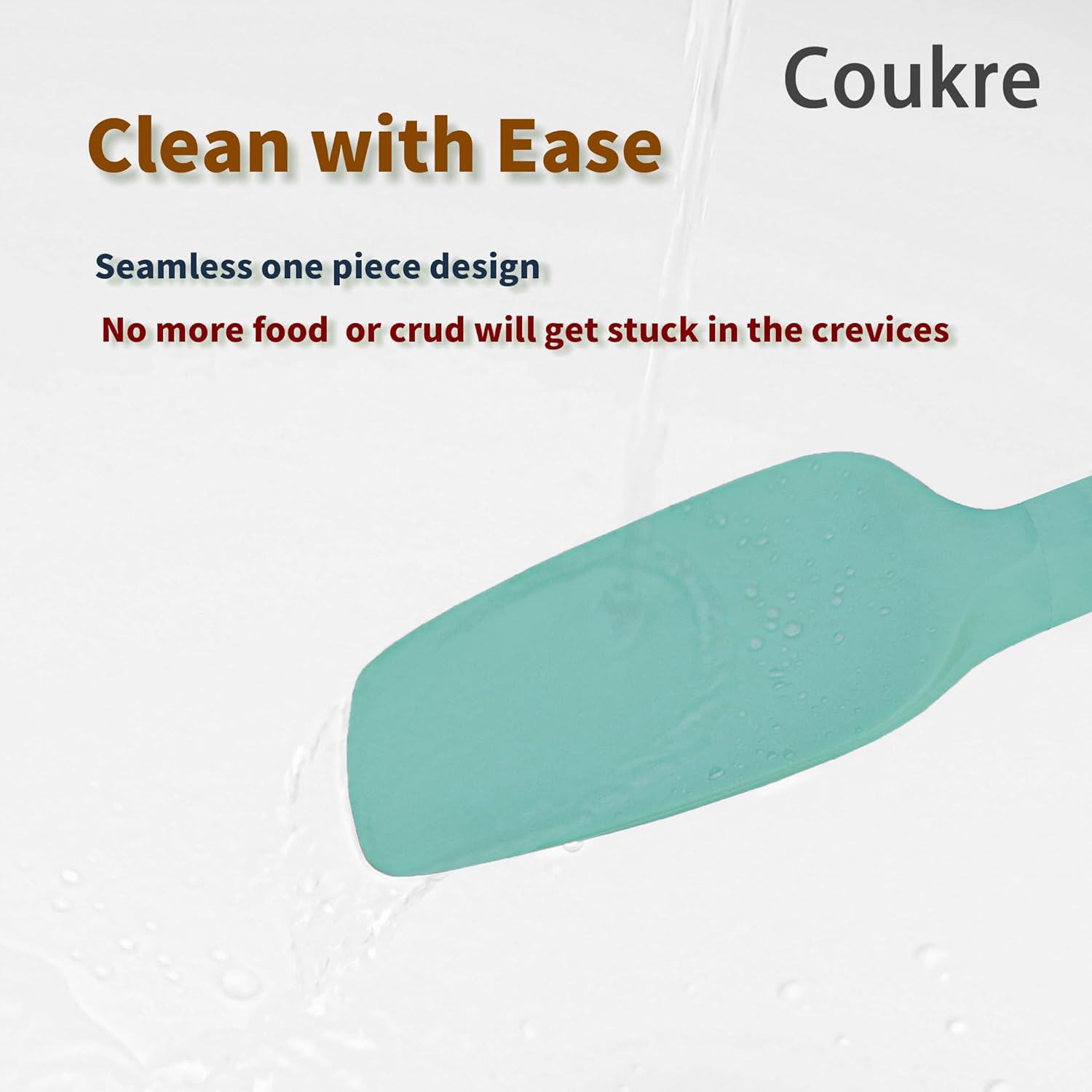 [Stronger & More Flexible]: Coukre Silicone Spatula has a reinforced plastic core inside for extra strength. and they are flexible tip thoroughly scrape the sides and bottoms of the pots and pans without scratching