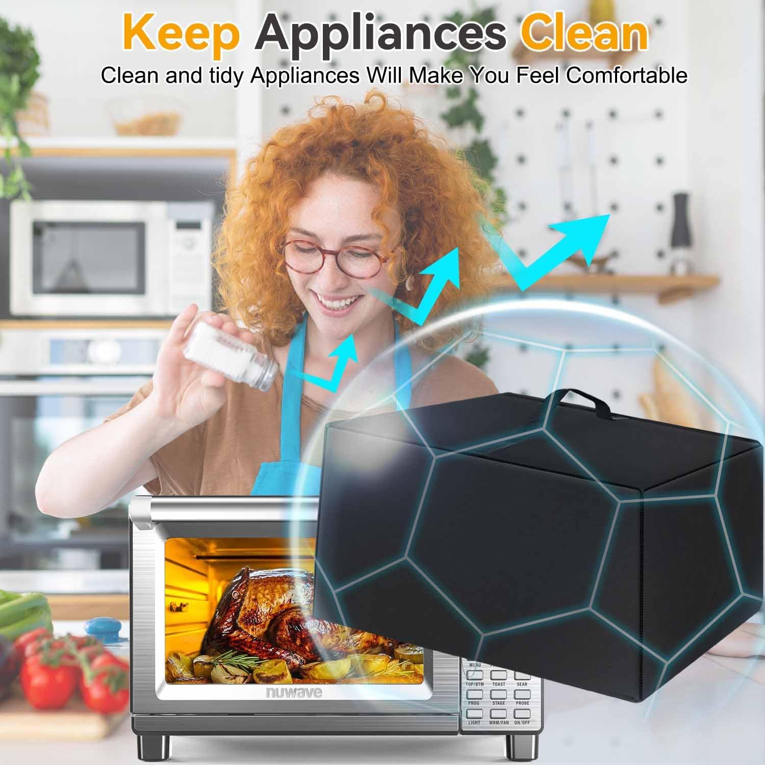 【DUST COVER DESIGN】: This best-selling air fryer toaster dust cover is equipped with a handle design, making it more convenient and faster for you to use. When not in use, it can be easily folded and stored without taking up any space, making it very practical.
