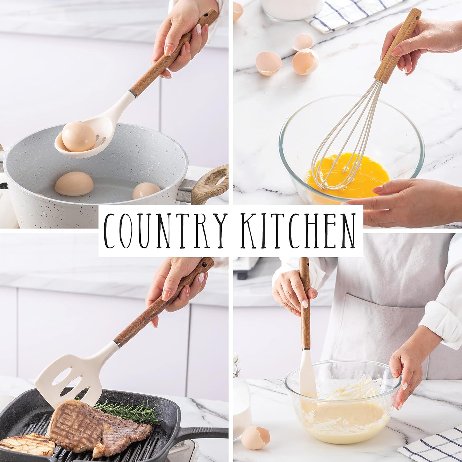 Country Kitchen will give you all the reasons to LOVE your kitchen utensils! Cook, bake and serve with this fashionable cooking tool set that is sturdy and easy to clean! Kitchen beauties that won’t disappoint!