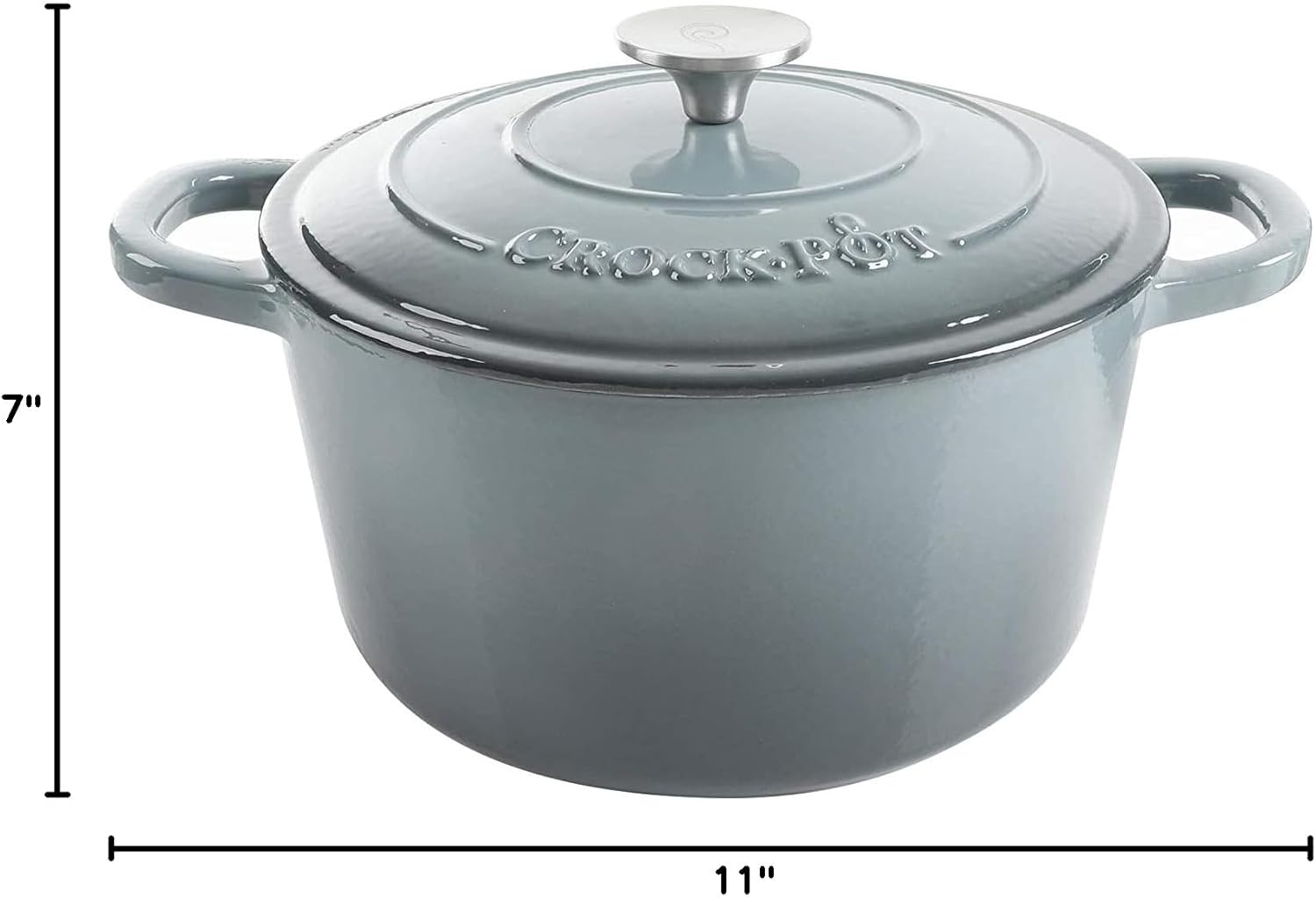 Crock Pot Artisan Round Enameled Cast Iron Dutch Oven, 7-Quart, Slate Grey w/Lid