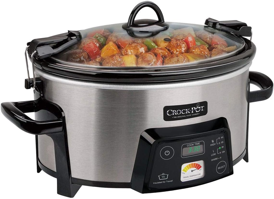 The SCCPCTS605-S 6-quart Programmable Cook & Carry Slow Cooker with HeatSaver™ Stoneware is the ultimate for on-the-go convenience. Designed with all the great portability features of the Cook ‘N Carry line, this model also uses special heat-retaining stoneware and temperature gauge so prepared foods stay warmer longer and ready to “serve on arrival.” Perfect for potluck dinners, tailgating, get-togethers and holiday parties.