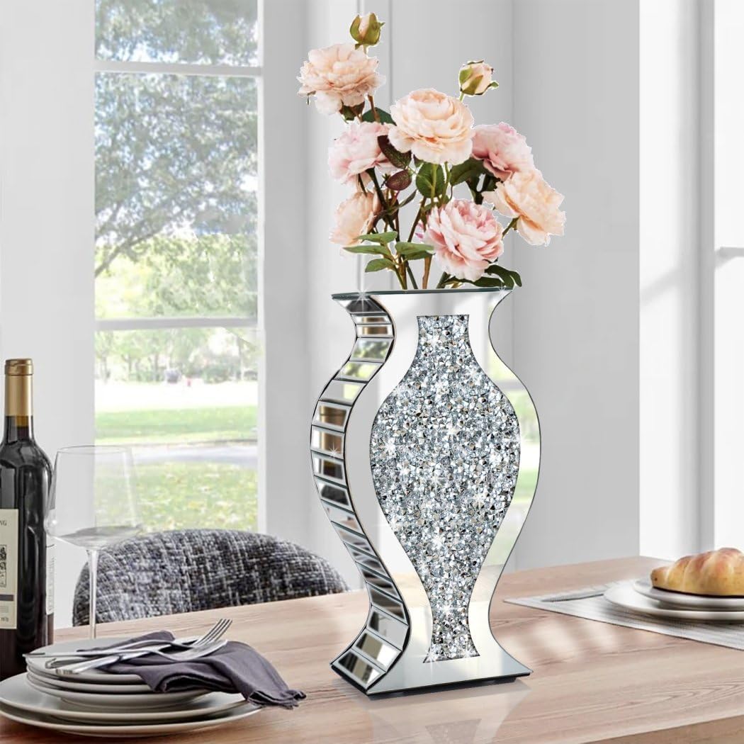 Silver Crush Diamond Mirror Vase. Tidy clean, elegant and stylish appearance with any kind of flower for home decor.